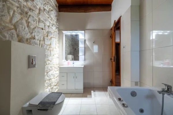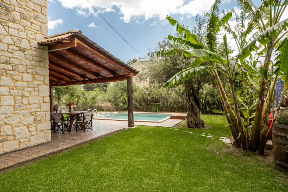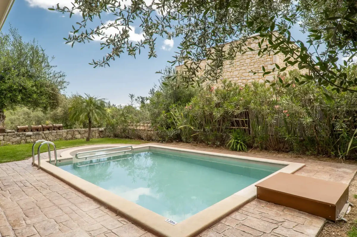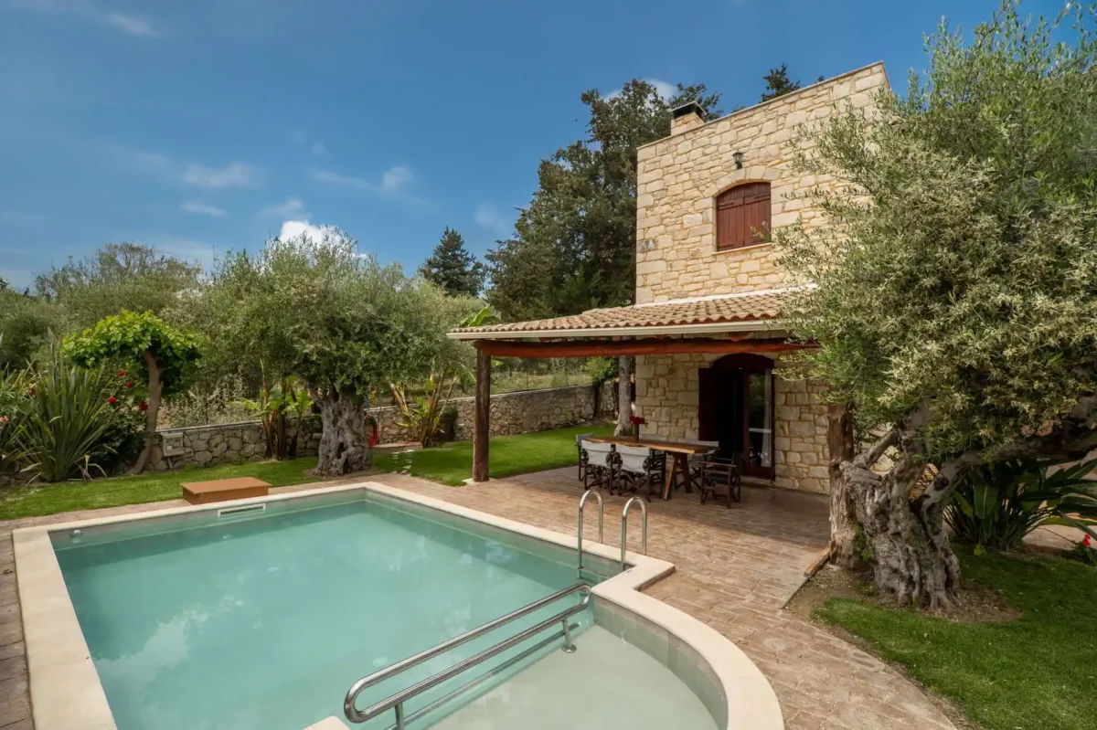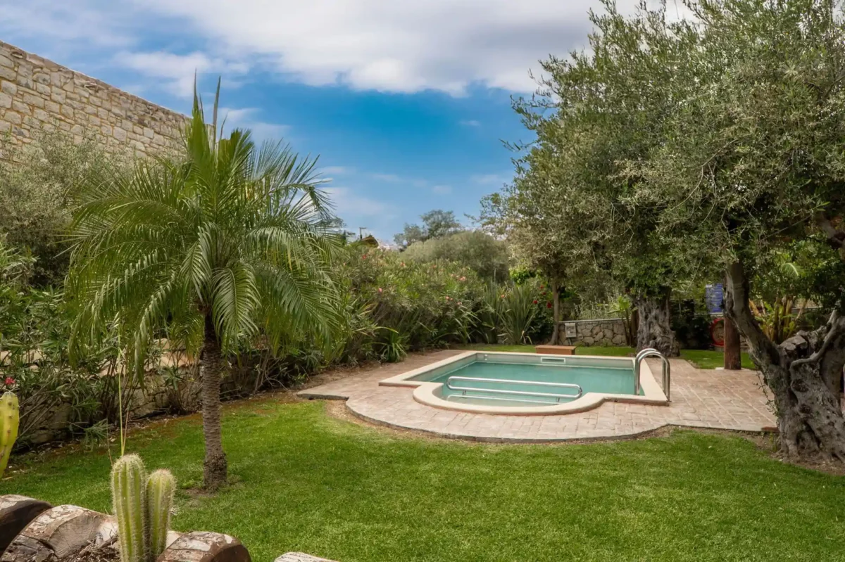 Qu’elle a ce charme simple et authentique que l’on aime retrouver en Crète : une maison tranquille, lumineuse, où l’on vit pieds nus entre la piscine, le jardin et les terrasses ombragées. Parfaite pour se poser en famille.