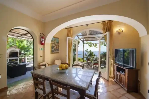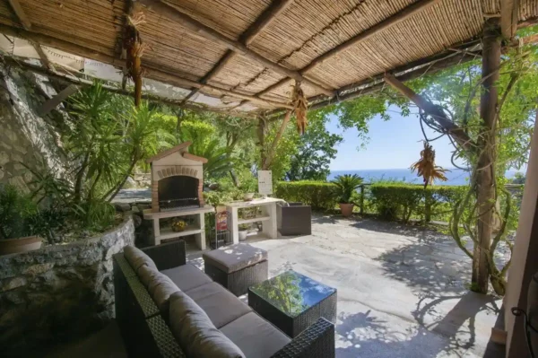 Orizzonte possède une piscine privée (4×8 mètres) avec vue imprenable sur la mer. Les terrasses, alternant zones ensoleillées et ombragées, sont parfaites pour se détendre et profiter de la beauté naturelle de la région. Le spacieux salon s’ouvre sur une terrasse ornée de vignes et de bougainvilliers. Cet espace extérieur comprend une salle à manger en plein air, un barbecue et des chaises longues, idéal pour des apéritifs au coucher du soleil.
