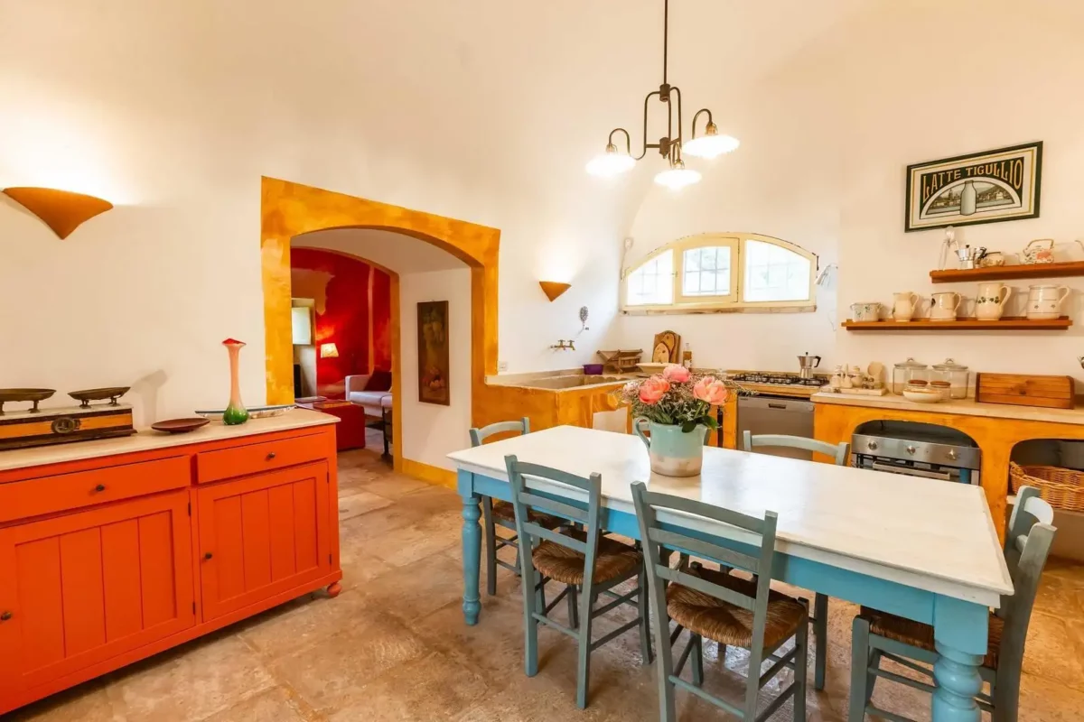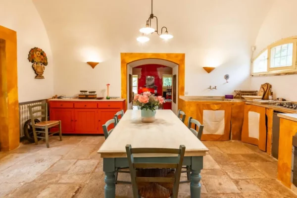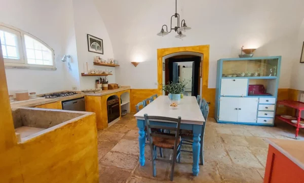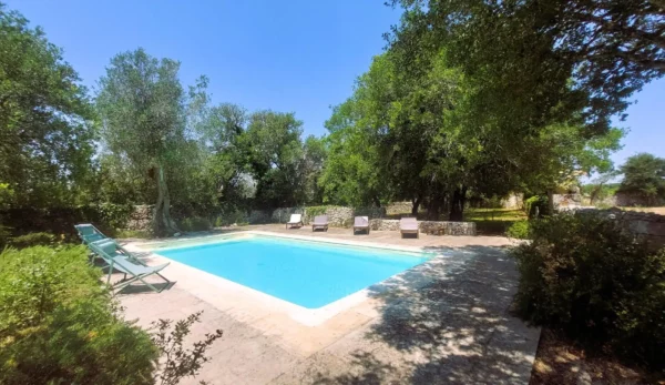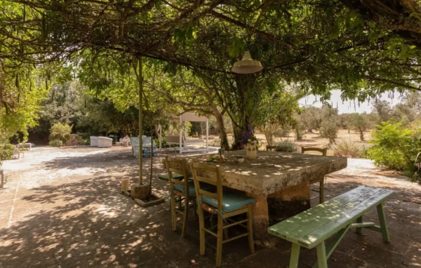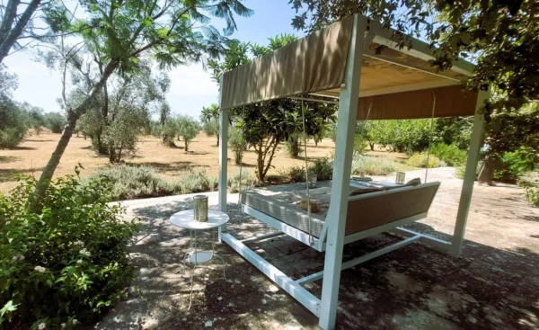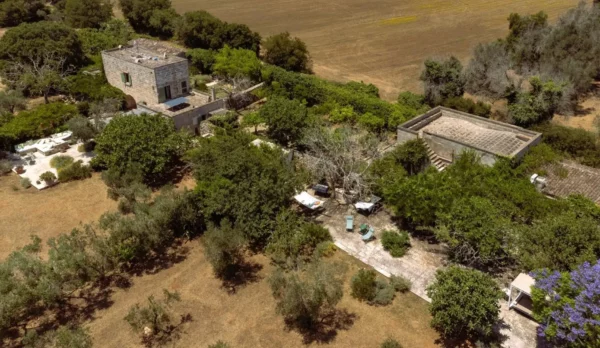Entourée d’oliviers centenaires et de chênes, elle offre un cadre paisible et raffiné où l’on retrouve l’esprit des anciennes résidences nobles des Pouilles.