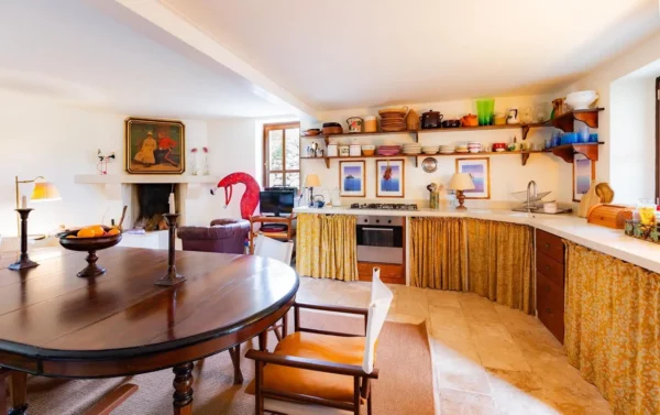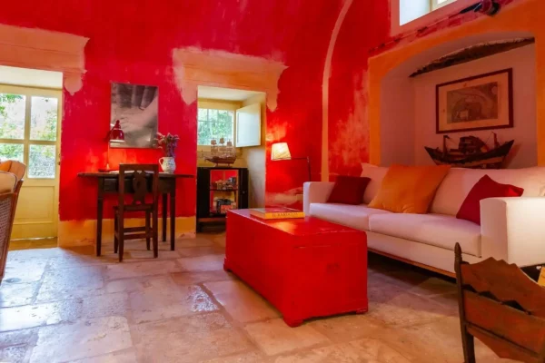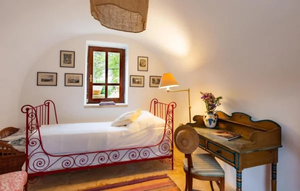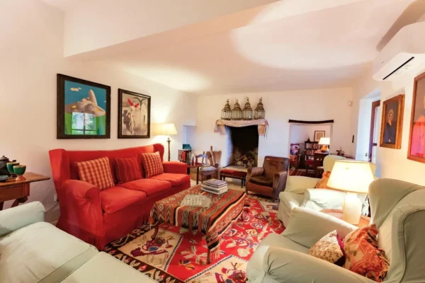 Les espaces intérieurs, décorés avec des meubles de famille anciens, créent une atmosphère chaleureuse et accueillante. Les plafonds voûtés en étoile, la pierre apparente et les matériaux naturels confèrent une élégance simple et intemporelle.