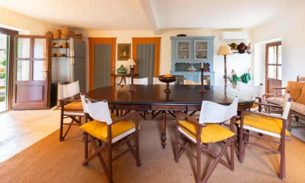 Maison principale : salle à manger spacieuse avec cuisine ouverte et cheminée ; salon confortable ; 1 chambre simple, 2 chambres doubles et 1 chambre à deux lits, chacune avec salle de bain ou salle de douche privative. À l’étage, une élégante suite principale avec terrasse privée et grande salle de bain (baignoire).