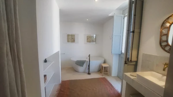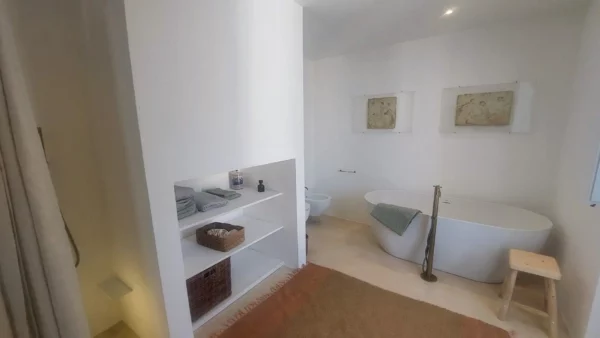 Premier étage : 1 chambre double et 1 chambre à 2 lits, chacune avec balcon et salle de bain-douche (l’une avec baignoire) ; accès à une terrasse avec piscine, mobilier de jardin et douche extérieure.