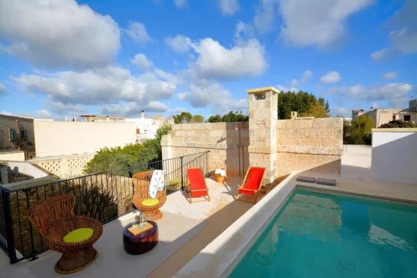 Le caractère authentique de cette demeure restaurée avec goût, entre charme historique et confort moderne. Ses terrasses aménagées et la piscine à l’étage, idéales pour se détendre dans la lumière du Salento. Sa situation centrale à Muro Leccese, à deux pas des commerces et à courte distance des plages d’Otranto et de Castro.
