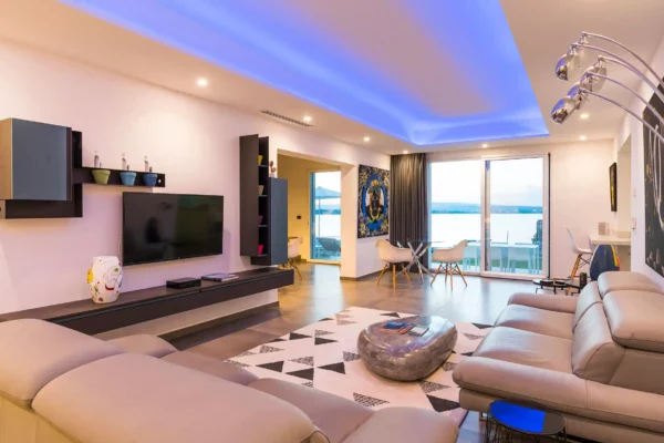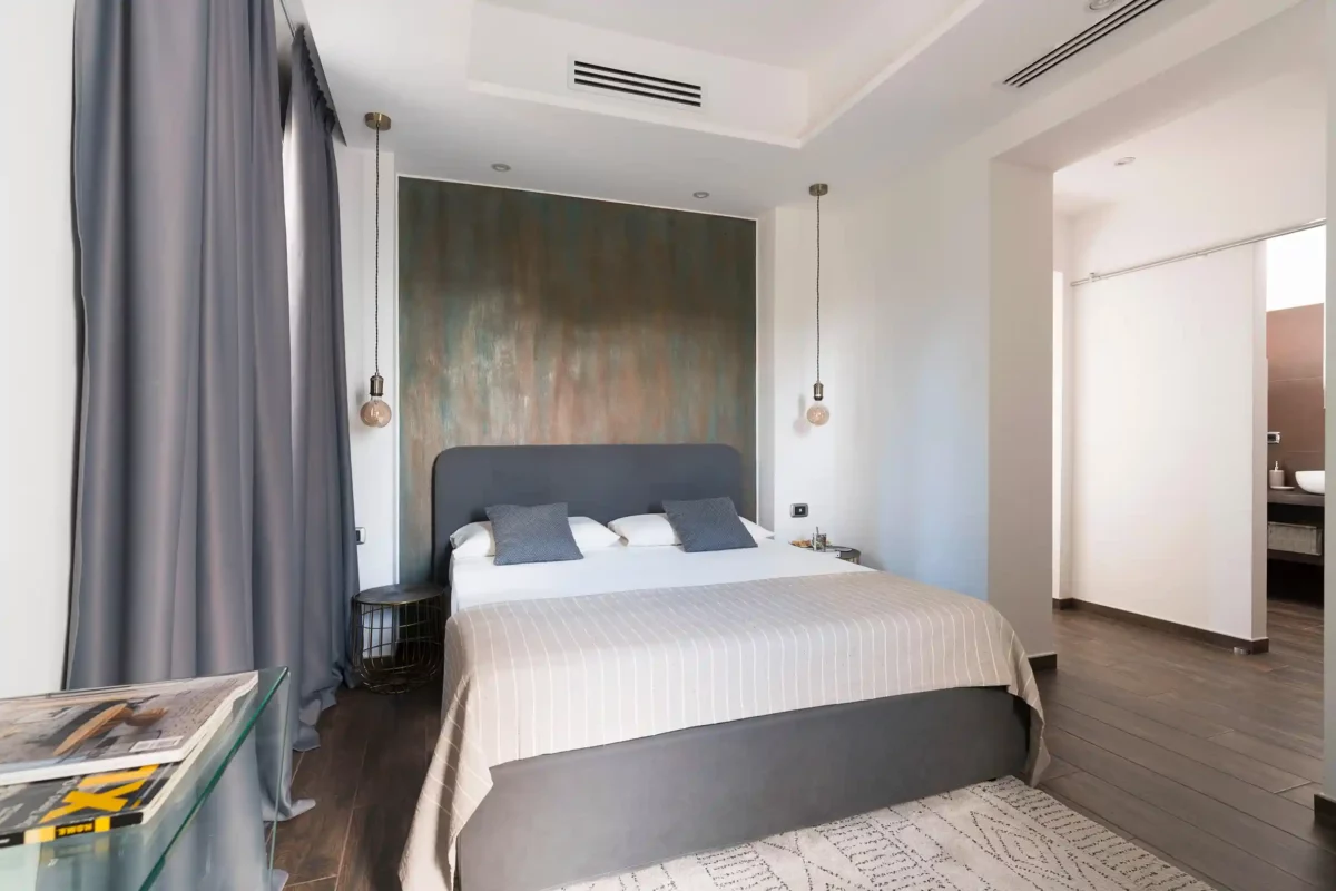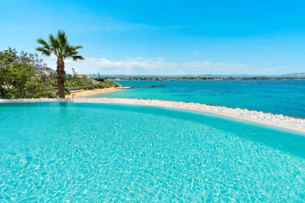 Sa position privilégiée permet d’admirer un panorama spectaculaire sur la baie de Syracuse, que l’on peut contempler depuis sa piscine privée à débordement ou ses spacieuses terrasses aménagées.