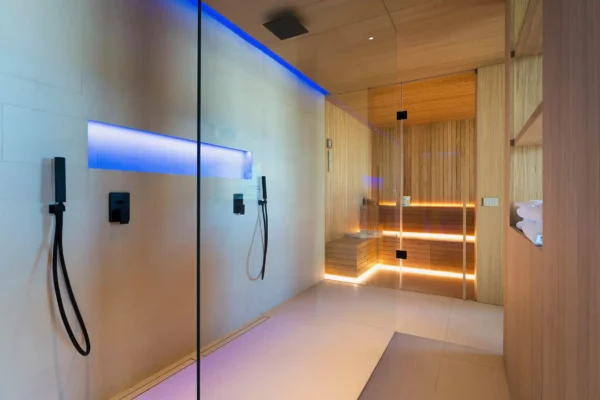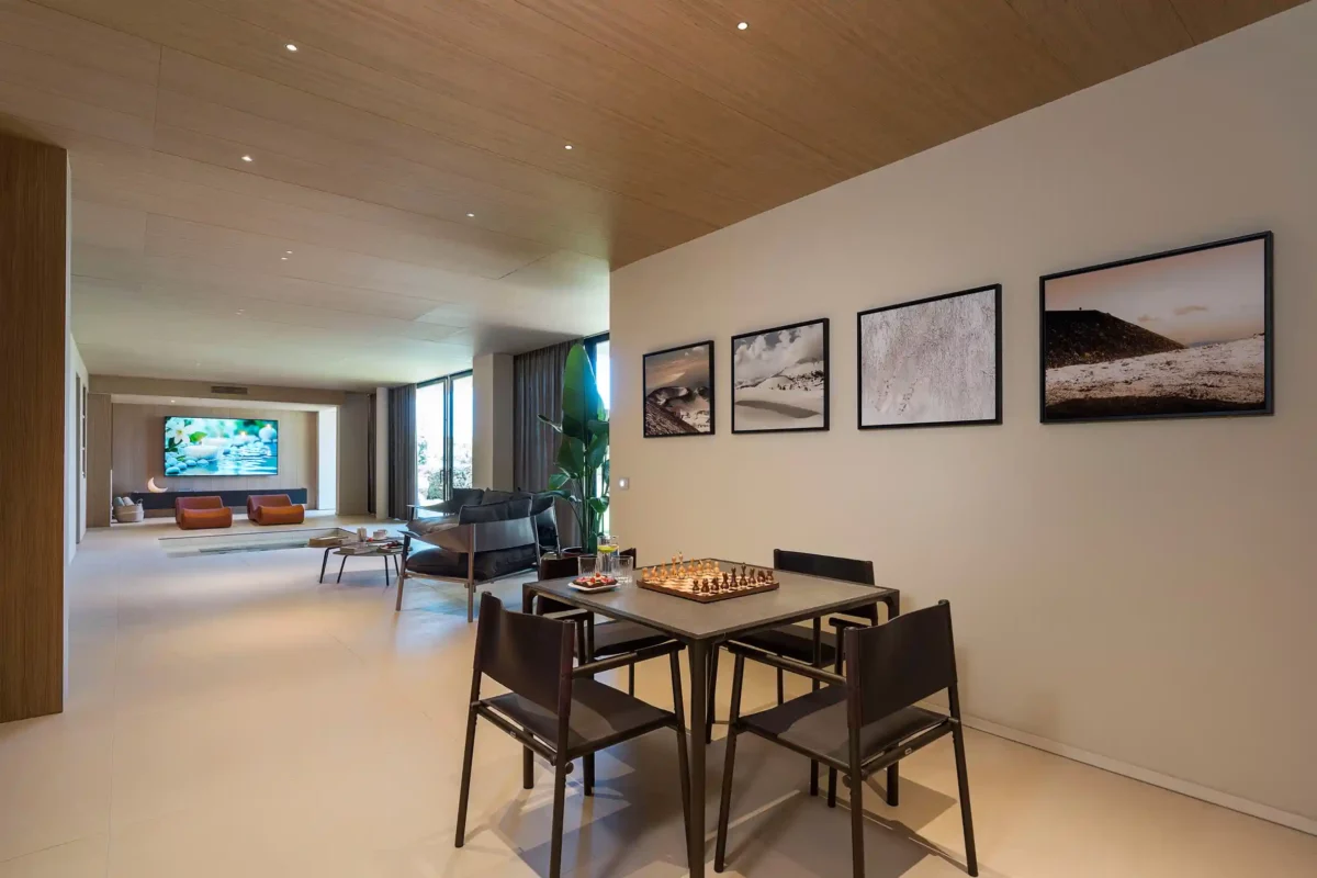 Son intérieur raffiné et confortable s’organise sur 3 niveaux. La villa dispose de spacieuses pièces à vivre baignées de lumière et de 4 chambres élégamment aménagées. Un espace bien-être privé vient compléter cet écrin de sérénité, comprenant un bain à remous, un sauna, un bain turc, une douche émotionnelle et un espace fitness.
