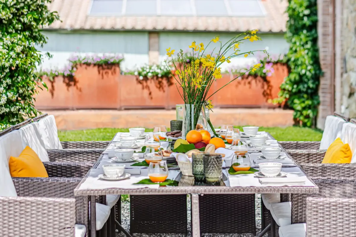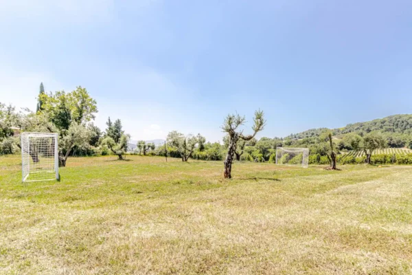 Le vaste parc est entièrement clôturé. Profitez de la grande piscine privée (6 m x 12 m, profondeur 1,4 m), d’une vasque hydromassante et d’un terrain de foot/volley. Un nouveau terrain de tennis est prévu pour la saison 2027. Les équipements extérieurs incluent également une aire de jeux pour enfants et des appareils de gym. Pour vos repas, un barbecue avec four à bois, un potager et une grande pergola avec table pour 10 personnes sont à votre disposition.