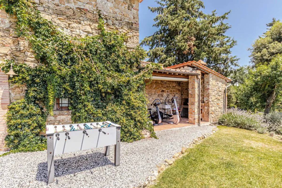 D’une part pour son domaine viticole exclusif : une propriété de 20 hectares proposant dégustations de vins et un cadre luxueux. D’autre part pour ses équipements haut de gamme : piscine, jacuzzi, table de billard et terrain multisport, parfaits pour le divertissement. Et enfin pour sa localisation culturelle et côtière : à courte distance de Volterra, San Gimignano et de la côte (25 km).