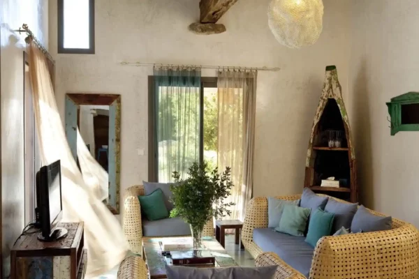 Villa Sacra propose 2 chambres, chacune avec salle de bain et toilettes, permettant à 4 personnes de séjourner dans un confort total et une belle indépendance. Les pièces à vivre s’ouvrent largement sur l’extérieur, favorisant une parfaite circulation dedans-dehors.
