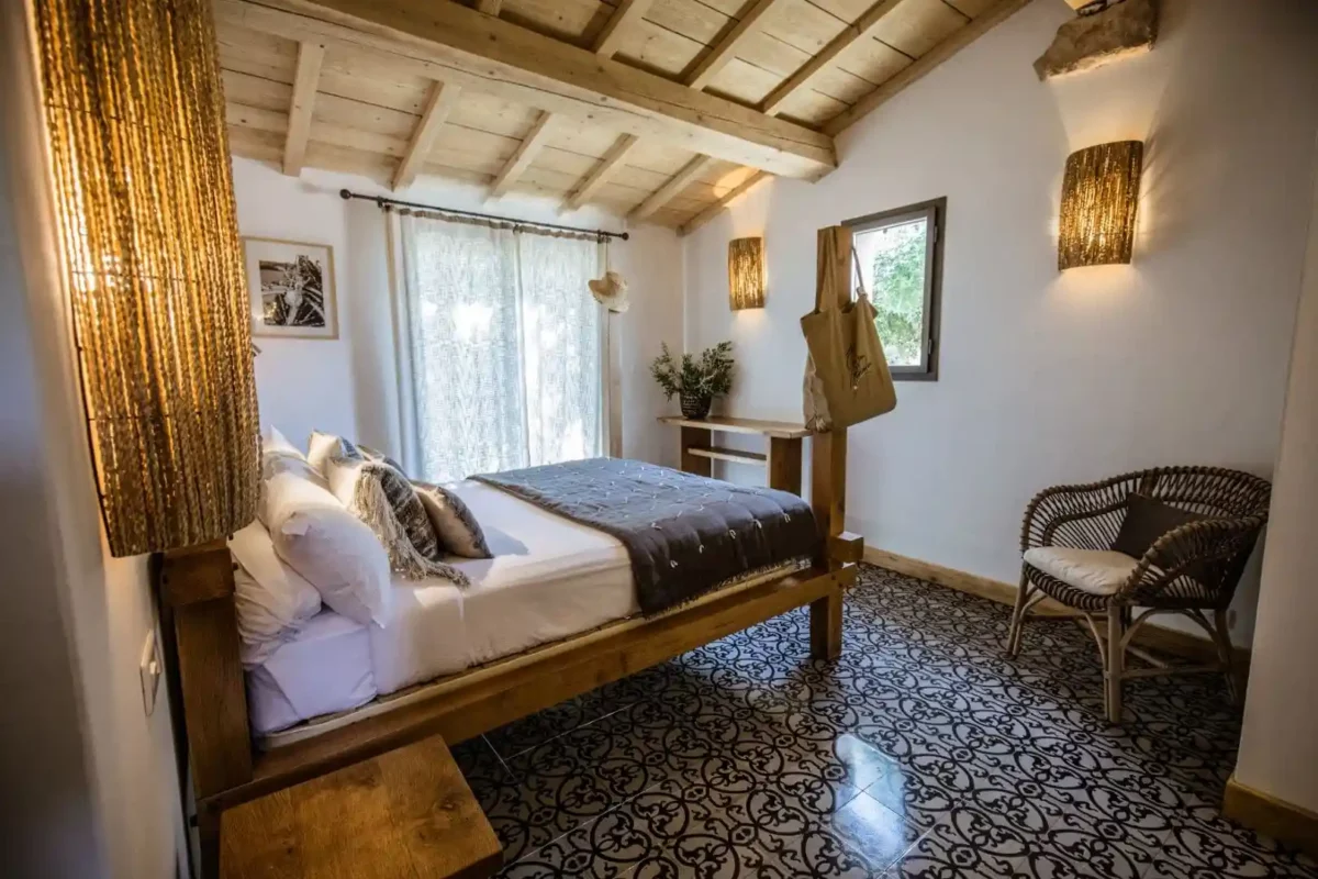 À seulement cinq minutes en voiture de la plage de Canetto, elle offre un cadre intime, entouré de nature, où l’on vient se ressourcer en famille ou entre amis. Sa décoration singulière, son jardin agrémenté d’un hamac, sa douche extérieure et sa grande cuisine d’été composent une atmosphère simple, douce et résolument tournée vers l’art de vivre en vacances.