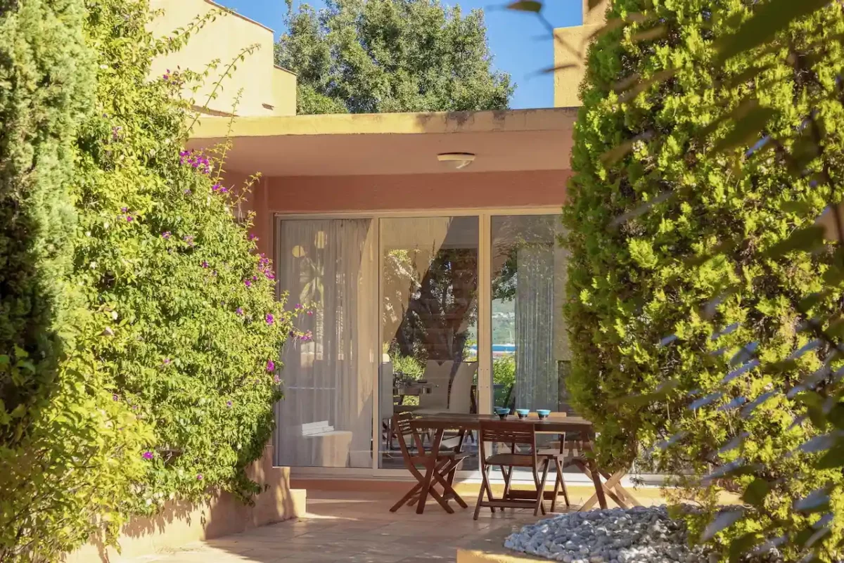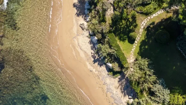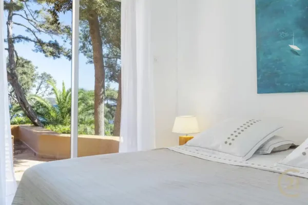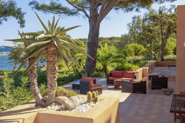 Ici, vous vivez réellement les pieds dans l’eau ! Le jardin magnifiquement arboré conduit directement à une petite plage privée au bout du terrain, où l’on pose sa serviette avant de plonger dans les eaux cristallines de la Méditerranée.
