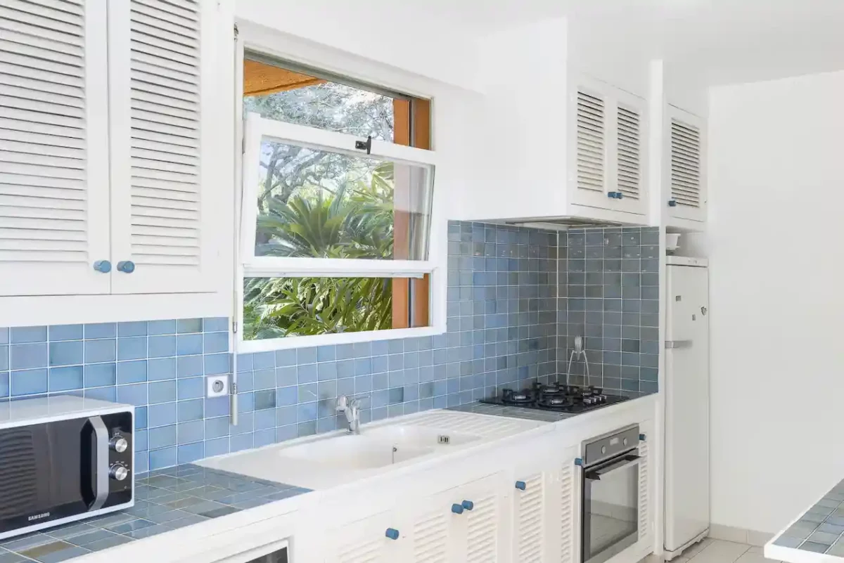 Cuisine équipée (plaques gaz ; four ; micro-ondes ; réfrigérateurs-congélateurs ; lave-vaisselle ; machine Nespresso ; bouilloire ; grille-pain. Buanderie (lave-linge ; table et fer à repasser). Barbecue charbon. Mobilier de jardin. Wifi dans toute la maison. TV Orange. Système bluetooth. Le stationnement se fait facilement sur la propriété, au sein du domaine sécurisé de Cala Rossa.
