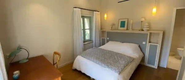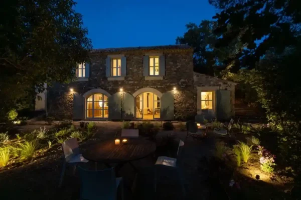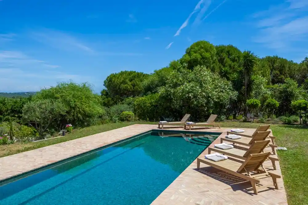 Villa Serena s’étend sur un terrain de 7 200 m² et propose de vastes espaces extérieurs propices à la détente. La piscine (12 x 4 m, profondeur 1,70 m avec marches d’angle) constitue le cœur de la propriété. Un pool house avec douche, lavabo et WC complète les installations extérieures. Un terrain de pétanque permet de partager des moments conviviaux. Une plancha électrique est également à disposition.