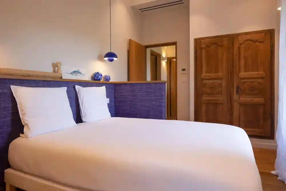 Villa Serena développe une surface habitable d’environ 160 m². Rez-de-chaussée : espace de vie ouvert comprenant cuisine, salle à manger et salon ; grande chambre avec lit queen size (160 cm), canapé et salle de douche en suite avec grande vasque ; vestiaire ; buanderie ; WC invités. Premier étage : chambre principale avec lit queen size (160 cm), salle de douche avec double vasque et WC privatif ; chambre avec deux lits de 80 cm pouvant être réunis en 160 cm ; troisième chambre avec lit queen size (160 cm), lavabo et douche.