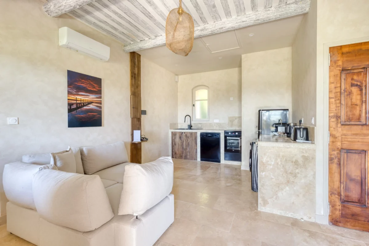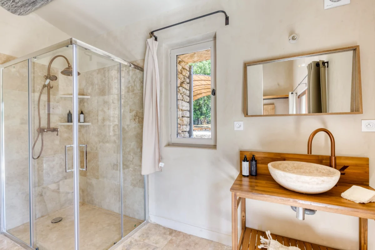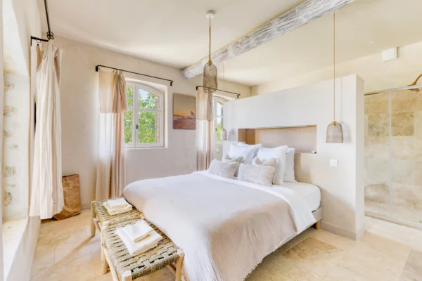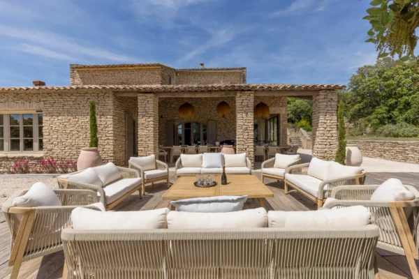 Pour son emplacement privilégié à Gordes, au cœur du Luberon, mais aussi pour son organisation en trois bâtisses indépendantes permettant d’accueillir jusqu’à 18 personnes.
