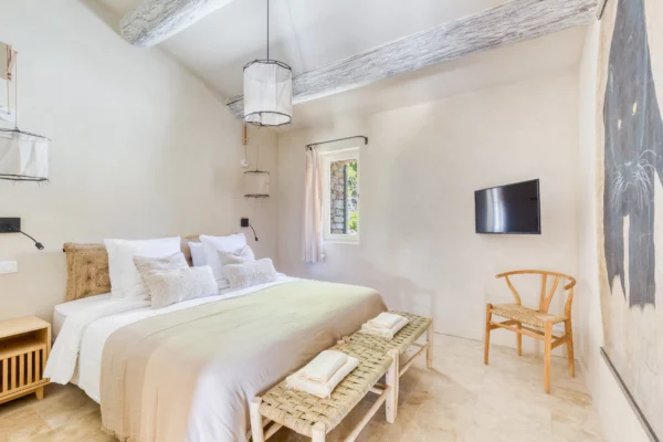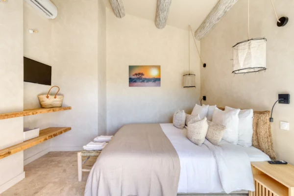 Répartie sur 3bâtisses indépendantes et développant plus de 450 m², Alari accueille jusqu’à 18 personnes grâce à ses 9 chambres climatisées, toutes équipées de salles de bains privatives et de télévisions. La maison principale propose de beaux espaces de vie ouverts sur les terrasses. Tandis que les annexes offrent une organisation idéale pour les familles nombreuses et les groupes d’amis.