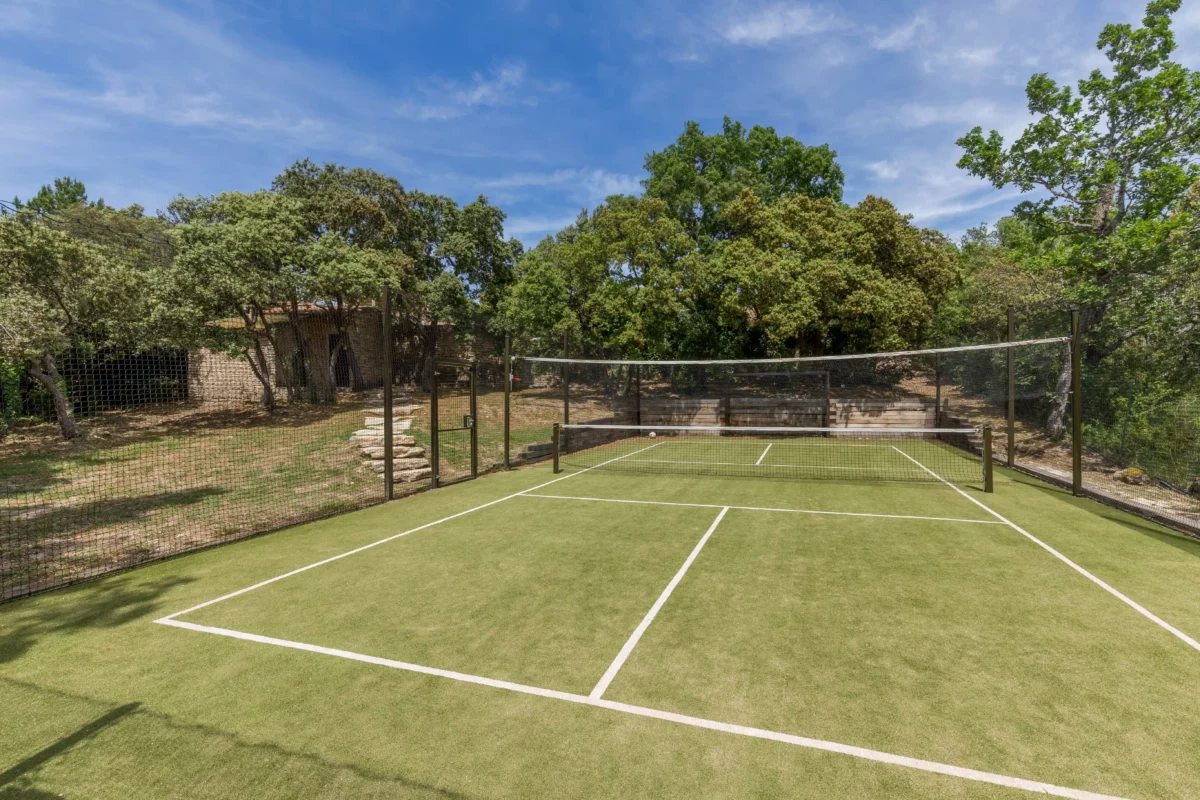 Propriété entièrement climatisée. TV dans toutes les chambres. Wi-Fi. Smart TV. Enceinte Bluetooth. Système Sonos. Coffre-fort. Lit bébé et chaise haute. Cuisine équipée (piano Smeg induction ; four ; four vapeur ; micro-ondes ; réfrigérateur-congélateur américain ; réfrigérateur-congélateur ; 2 lave-vaisselle ; cafetière Nespresso et cafetière filtre ; bouilloire ; grille-pain ; robot ménager). Lave-linge. Sèche-linge. Fer et table à repasser. Pinède privée 4 ha dont environ 1 ha clos. Terrasses ombragées. Grandes tables repas (terrasse et pool house). Salon de jardin. Barbecue charbon. Plancha. Piscine chauffée sur demande (12 x 5 m) sécurisée par volet roulant. 18 chaises longues. 9 parasols. Pergola. Pool house avec cuisine d’été, douche et toilettes. Table de ping-pong. Terrain de pétanque (boules fournies). Terrain multisports éclairé : tennis, football, volley-ball. Balançoire. Salle de sport climatisée (vélo elliptique ; tapis de course ; vélo d’appartement). Sauna. Table de massage. Espace yoga extérieur. Borne de recharge véhicule électrique. Portail automatique. Parking privé. Maison non-fumeur. Animaux domestiques autorisés sur demande.