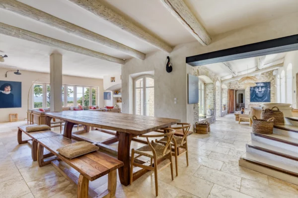Surface habitable : environ 450 m2. 3 bâtisses indépendantes. 9 chambres climatisées. 9 salles de bains. Capacité : 18 personnes. Maison principale : grande cuisine conviviale avec coin repas ouvrant sur terrasse plein sud. Vaste salon. Bureau. 5 chambres au total (2 au rez-de-chaussée dont 1 suite, 3 à l’étage). Annexe 1 attenante : 2 chambres avec accès indépendant. Salon. Annexe 2 indépendante : cuisine ouverte équipée. Salon. 2 chambres.