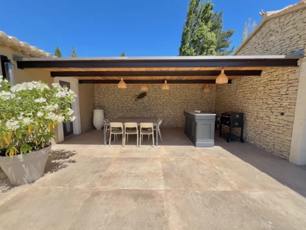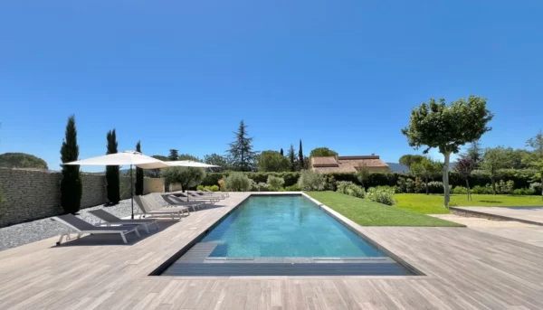 Les extérieurs de la villa Denise sont conçus pour profiter pleinement du climat provençal. Sa piscine (18 x 4,5 m), sécurisée par une alarme immergée, ravira les amateurs de nage. Entourée de 10 bains de soleil, elle invite à la détente sous le soleil du Luberon. Une grande terrasse ombragée avec salle à manger extérieure et salon de jardin permet de savourer des repas conviviaux. Pour les moments de loisir, un terrain de pétanque avec boules est également à disposition. Le portail automatique assure sécurité et intimité tout au long du séjour.