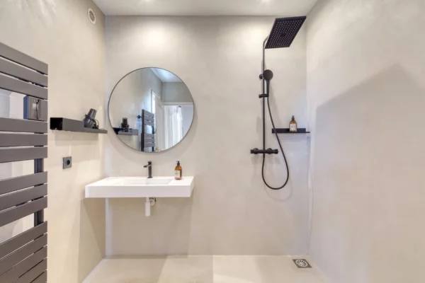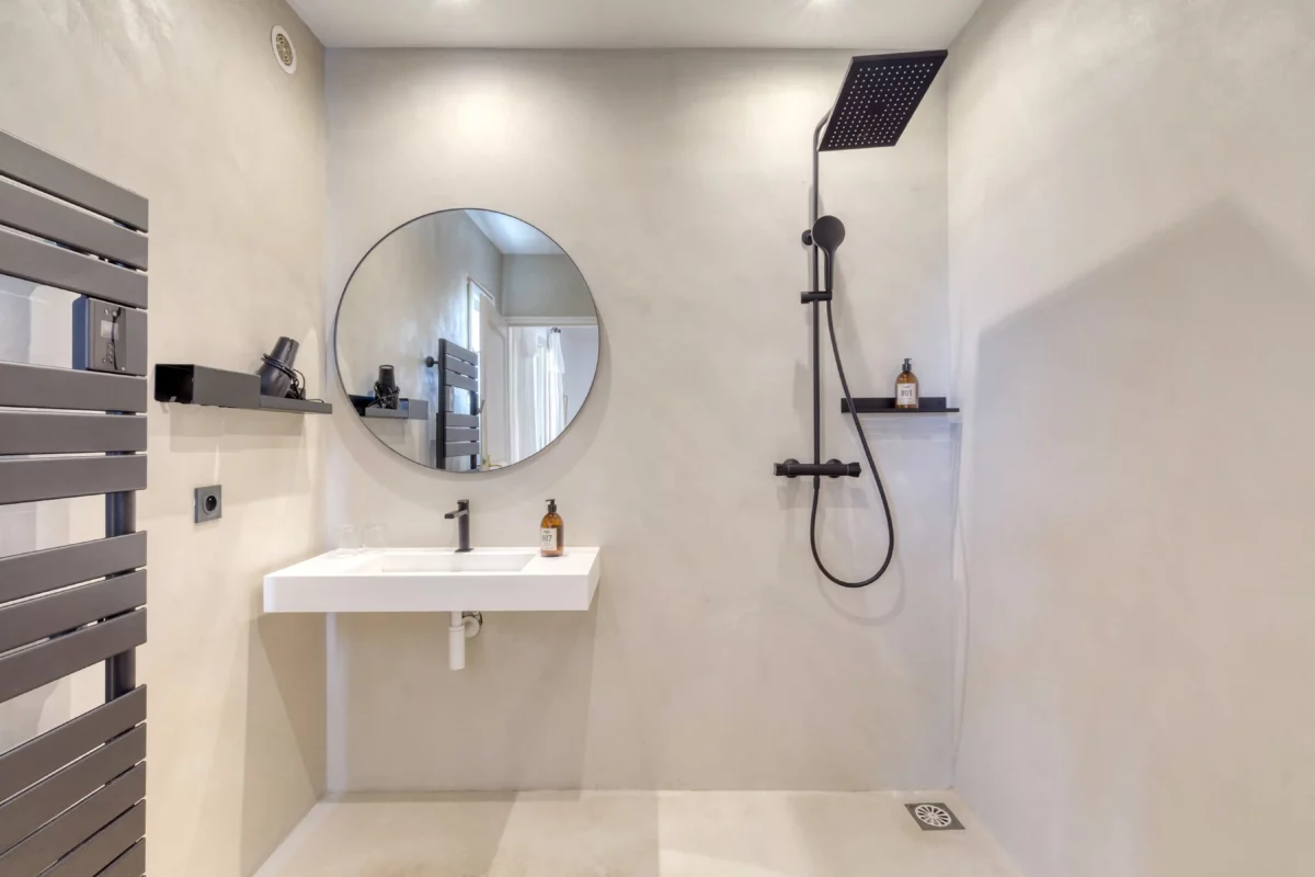 Surface habitable d’environ 370 m² de plain-pied. Maison principale : chambre (lit de 180 cm) ; salle de bains (baignoire ; douche et deux vasques ; toilettes séparées).