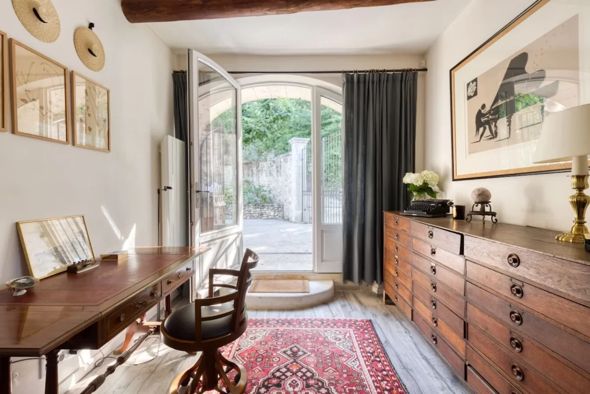 Ménerbes, au cœur du triangle d’or du Luberon. Village accessible à pied. Environnement privilégié avec vues sur les villages perchés, les vignobles et le Mont Ventoux.
