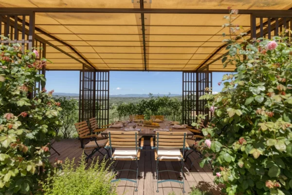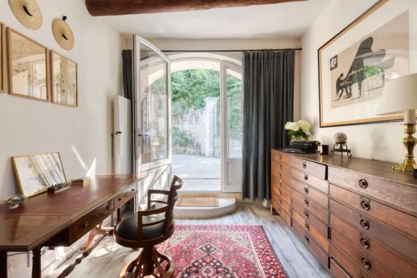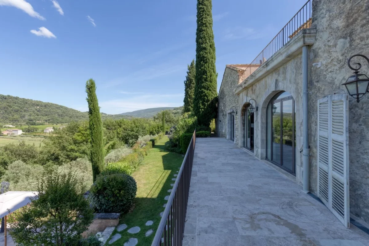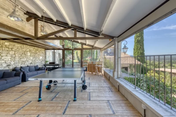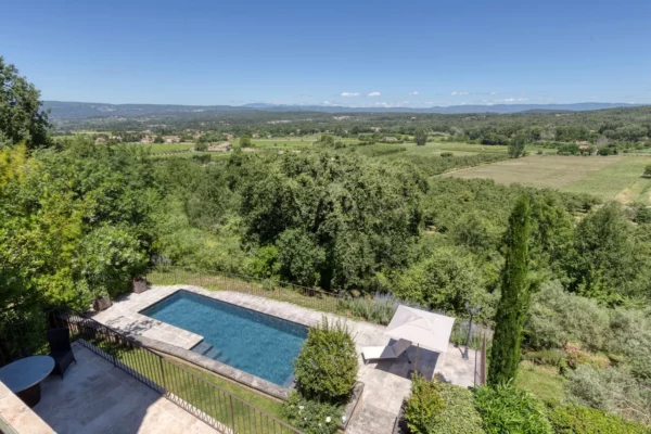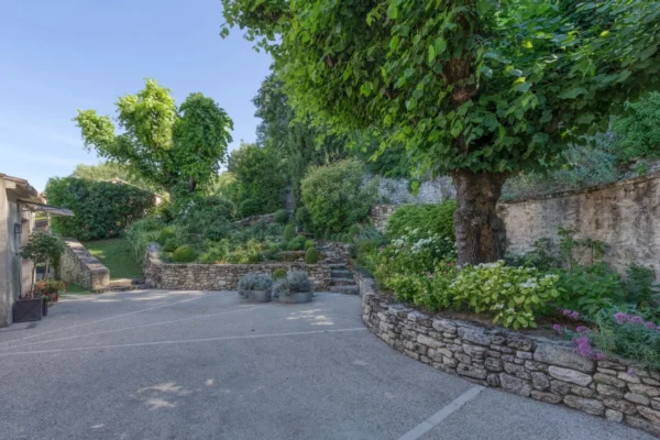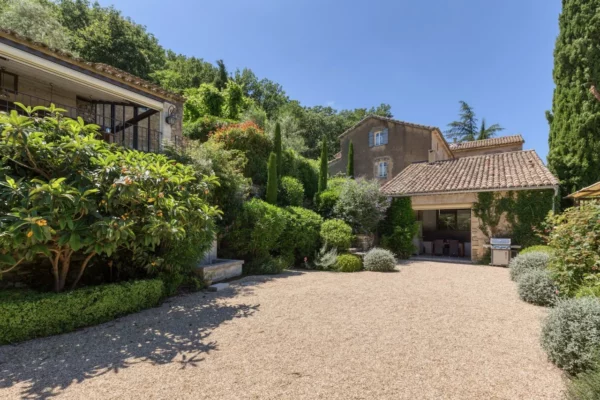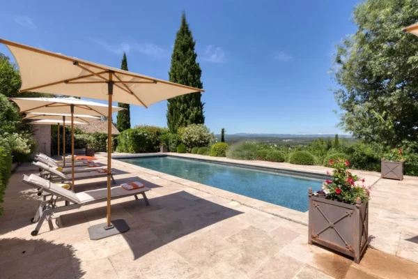 À l’extérieur, Angèle se distingue par son vaste parc paysager d’environ un hectare, soigneusement aménagé avec des oliviers, des amandiers et des roses anciennes. Plusieurs terrasses invitent à profiter pleinement de la douceur provençale, que ce soit pour les repas en plein air ou les apéritifs au coucher du soleil. La propriété dispose de 2 piscines, offrant de magnifiques vues sur les villages perchés du Luberon, les vignes environnantes et le Mont Ventoux. Chaque espace extérieur bénéficie de panoramas ouverts sur le paysage provençal, créant une atmosphère paisible et élégante.