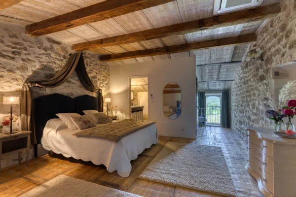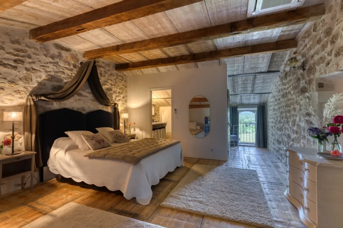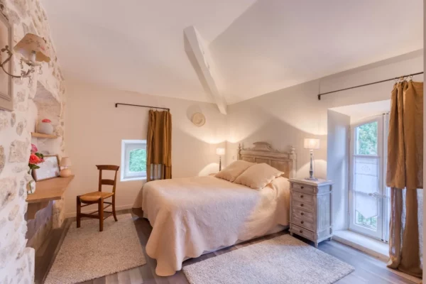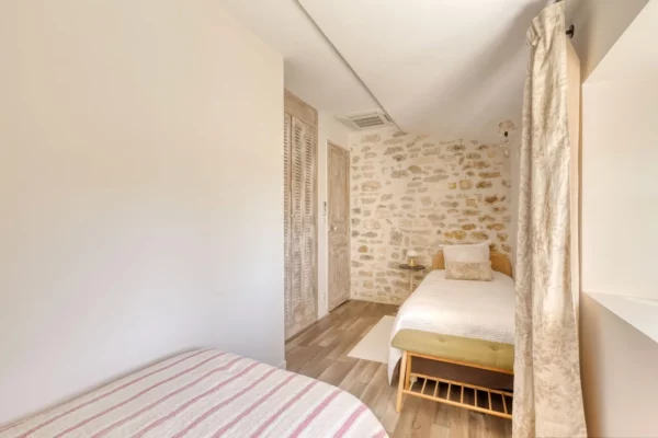 La propriété peut accueillir jusqu’à 15 personnes grâce à ses 8 chambres et ses 6 salles de bains, réparties sur plusieurs niveaux et accessibles par différents accès, permettant à chacun de préserver son intimité. Les chambres, décorées avec soin, offrent une atmosphère reposante et fonctionnelle, parfaitement adaptée aux séjours partagés.