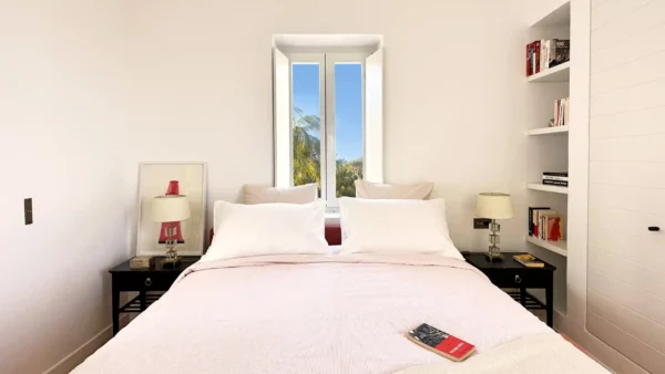 CHAMBRES INDÉPENDANTES – 4 personnes – Niveau entrée : 2 chambres d’amis (lit double ; climatisation) ; salles de bain attenantes (douche) ; chacune avec un accès indépendant depuis la terrasse principale ; vue mer.