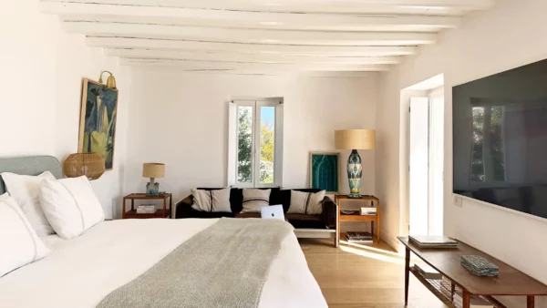 Artista se distingue par son accès privé à la mer et sa collection d’art unique qui lui confère une atmosphère de galerie privée. Avec ses 4 chambres en suite, dont deux indépendantes, elle offre une excellente configuration pour l’intimité des hôtes. Sa proximité avec Marpissa et les plages de la côte est en fait un point de départ idéal pour découvrir l’authenticité de Paros.