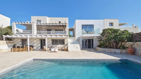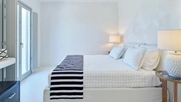 Conçue pour accueillir jusqu’à 12 invités dans ses 6 chambres élégantes, la villa Sansa se déploie sur 3 niveaux avec des espaces de vie ouverts, des suites parentales avec vue mer et une circulation fluide entre l’intérieur et l’extérieur. La propriété dispose d’une piscine privée, de vastes terrasses et d’espaces de restauration extérieurs comprenant un bar de piscine et un barbecue. Mêlant le charme cycladique à des finitions modernes, Sansa est pensée pour une expérience estivale inoubliable.