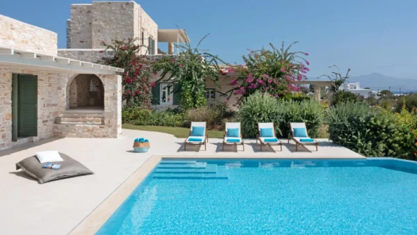 Sienna est idéale pour ceux qui recherchent une propriété traditionnelle à proximité immédiate de la mer. Avec ses 7 chambres réparties entre maison principale et maison d’amis, sa piscine à débordement et son accès à pied à Santa Maria Beach, cette villa offre un cadre confortable pour profiter de Paros.