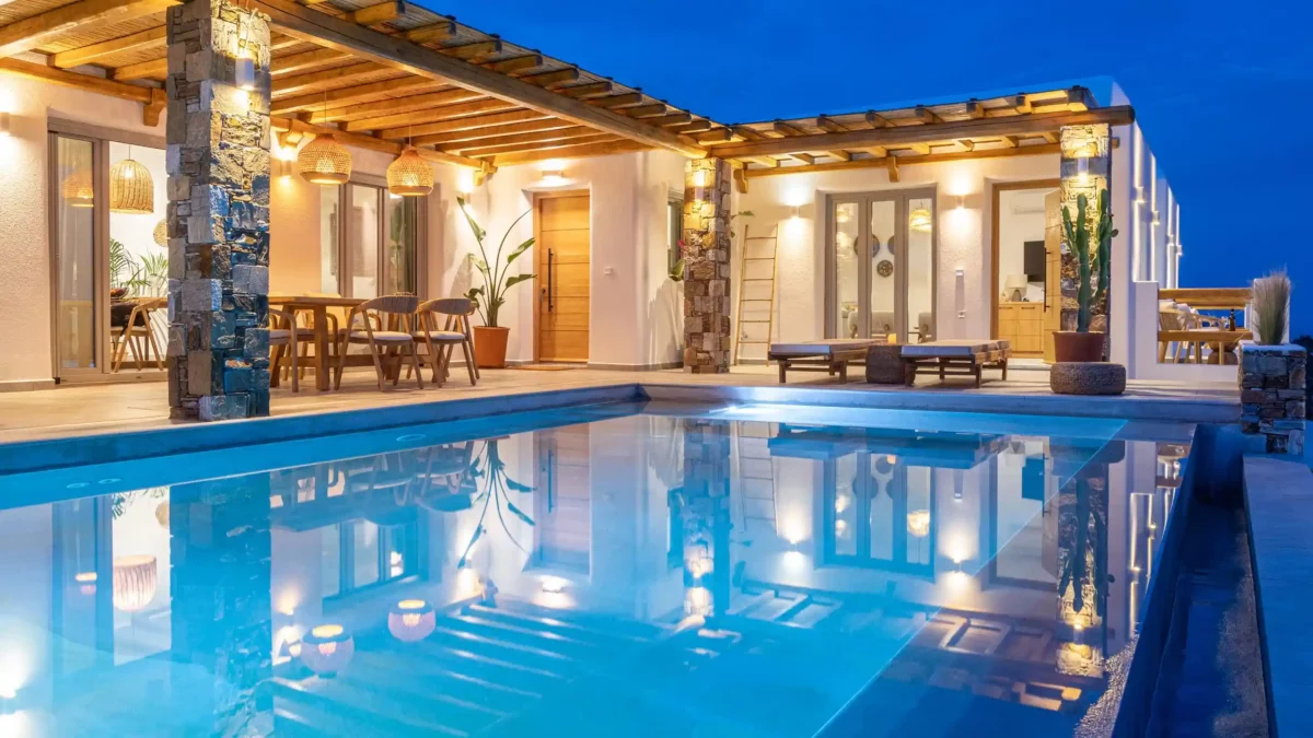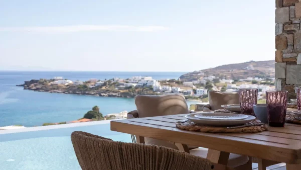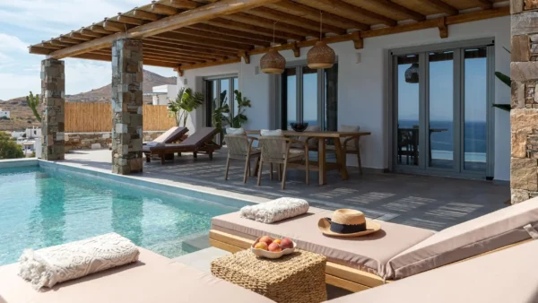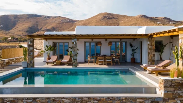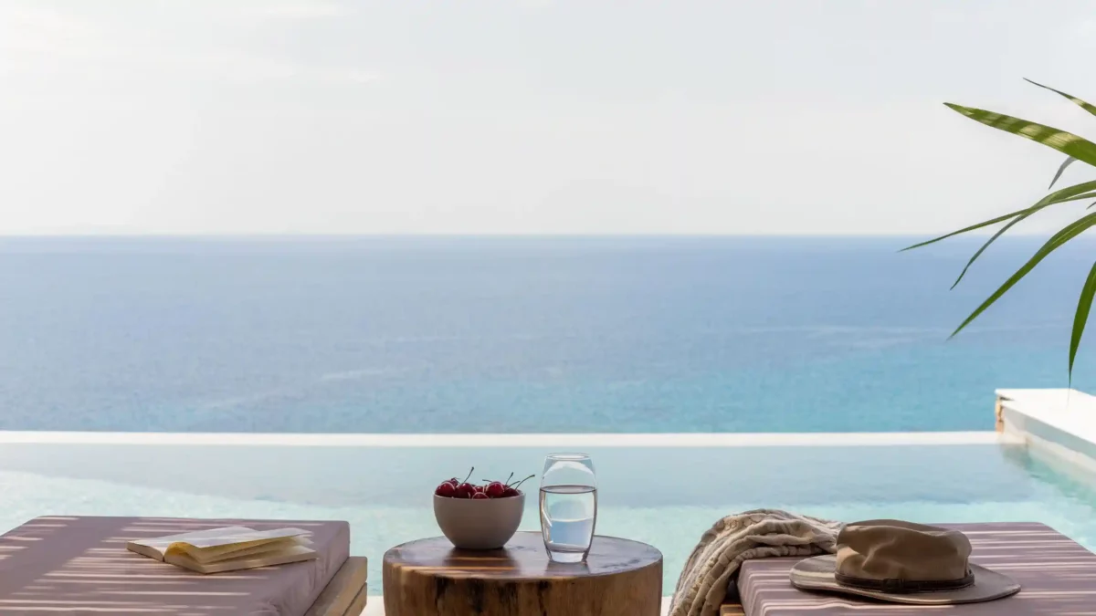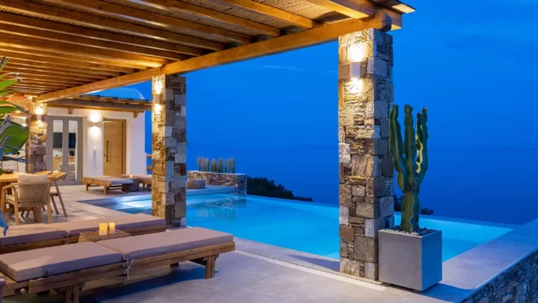 The Captain’s Lookout est idéale pour les grandes familles ou groupes d’amis recherchant intimité et modularité. Avec ses deux ailes indépendantes, ses 2 piscines privées et sa salle de sport, elle combine flexibilité et prestations haut de gamme. Vous apprécierez son architecture minimaliste et ses vues infinies sur la mer Égée.