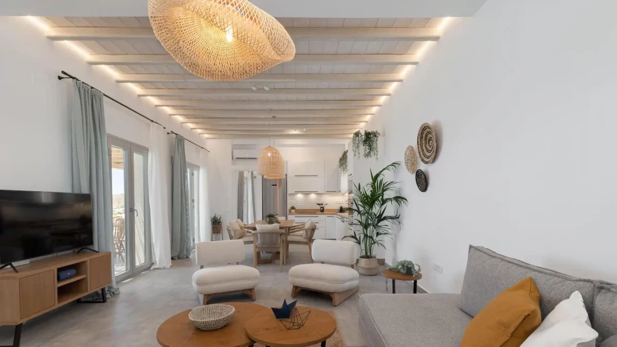 À seulement 12 minutes d’Ermoupoli, The Captain’s Lookout bénéficie d’un emplacement stratégique entre plages organisées et criques confidentielles accessibles à pied. Cette adresse conjugue isolement raffiné et proximité des lieux emblématiques de Syros.