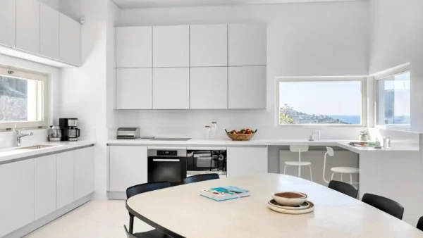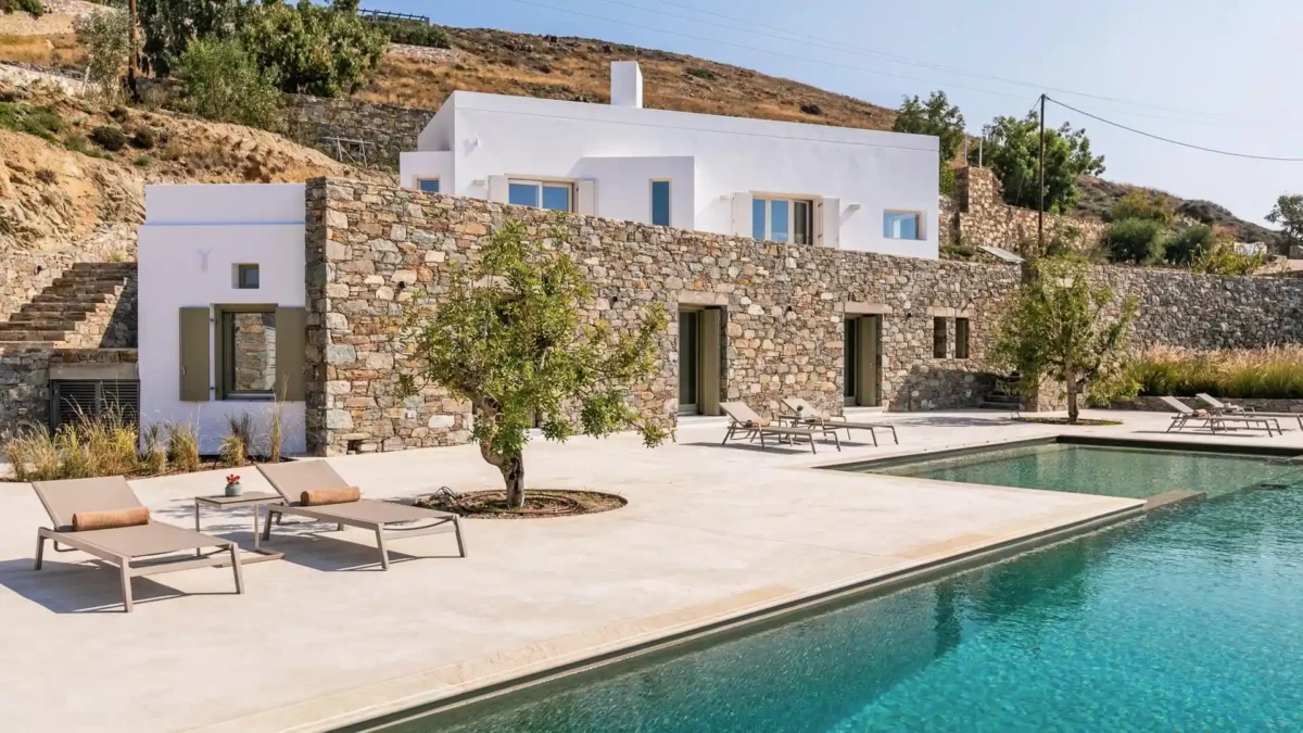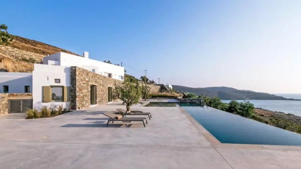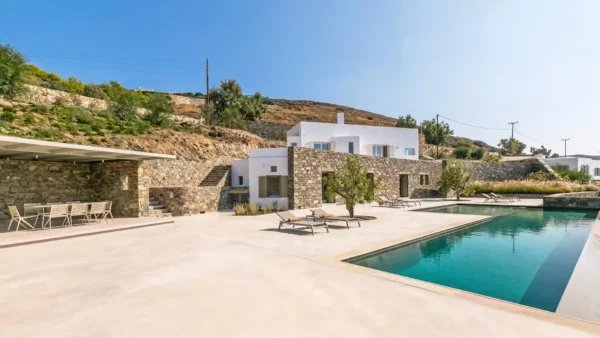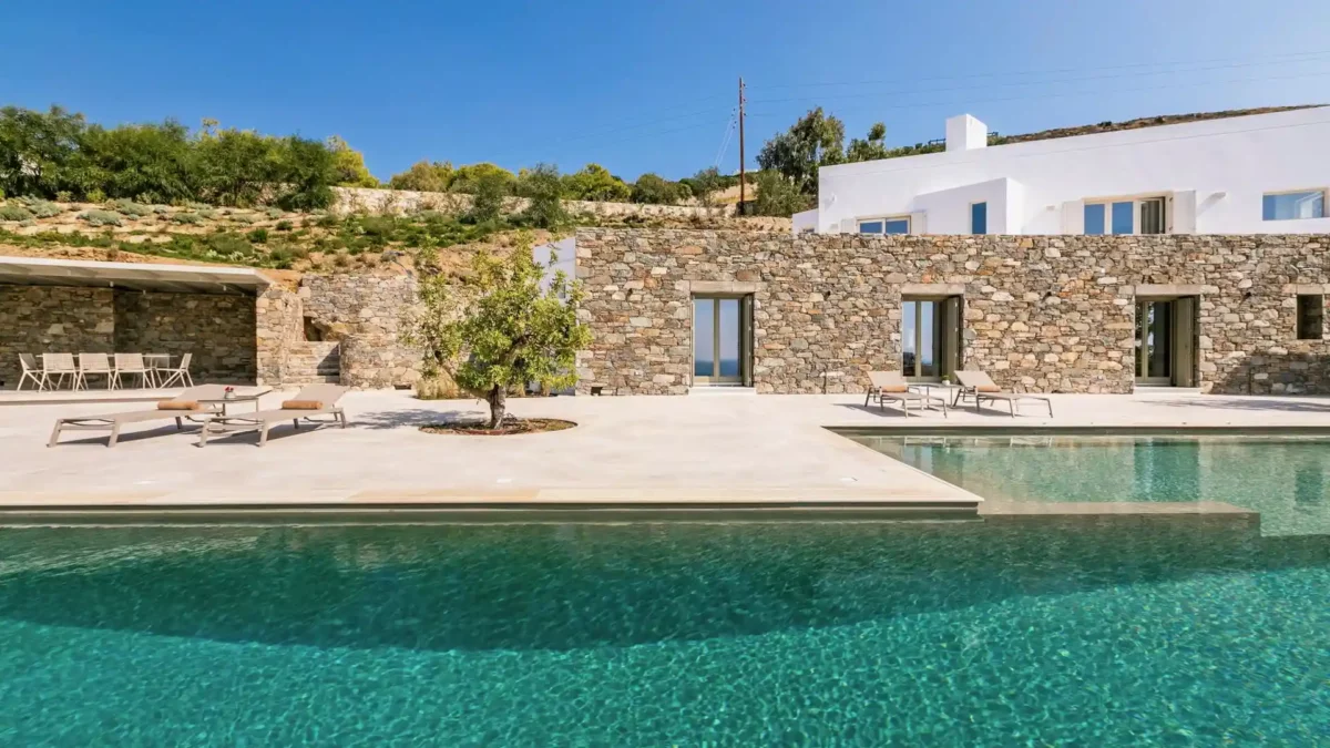 Villa Lewis est idéale pour un séjour en famille ou entre amis. Elle offre 4 chambres en suite, une piscine monumentale avec spa et un accès direct au littoral. Sa situation privilégiée à Komito permet de profiter du calme d’un domaine privé tout en étant proche de l’animation de Poseidonia. Vous apprécierez l’esprit authentique et raffiné de Syros. Pour les groupes plus importants, elle peut être louée avec Villa Kenton.