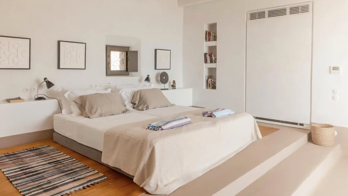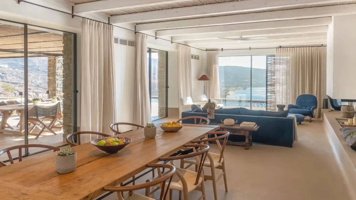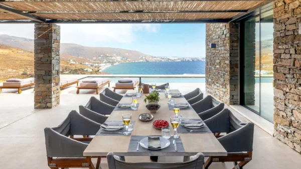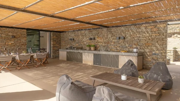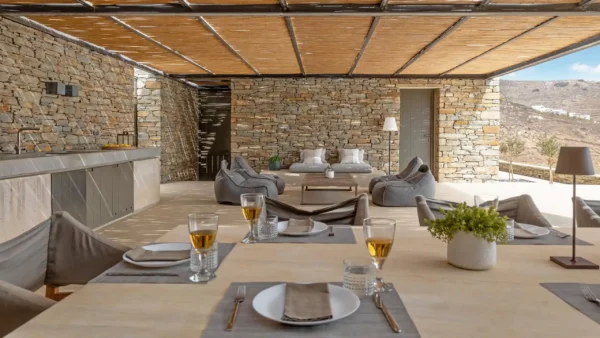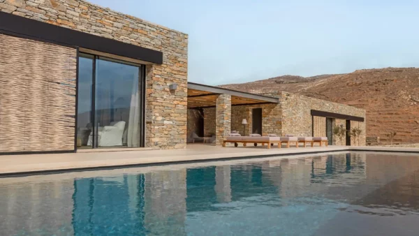 The Meridian est idéale pour les amateurs de design et de tranquillité. Elle offre 5 chambres en suite, une piscine d’exception et un accès privilégié à l’une des plages les plus sauvages de Tinos. Sa structure en pierre et son aménagement minimaliste en font un lieu unique pour se ressourcer. Vous profiterez d’une intimité totale tout en étant à moins de 5 kilomètres de l’animation de la ville de Tinos.