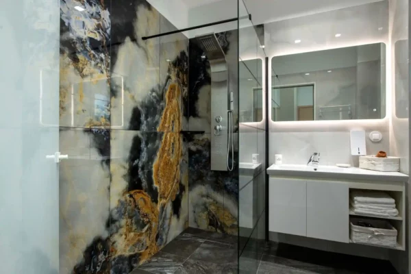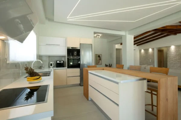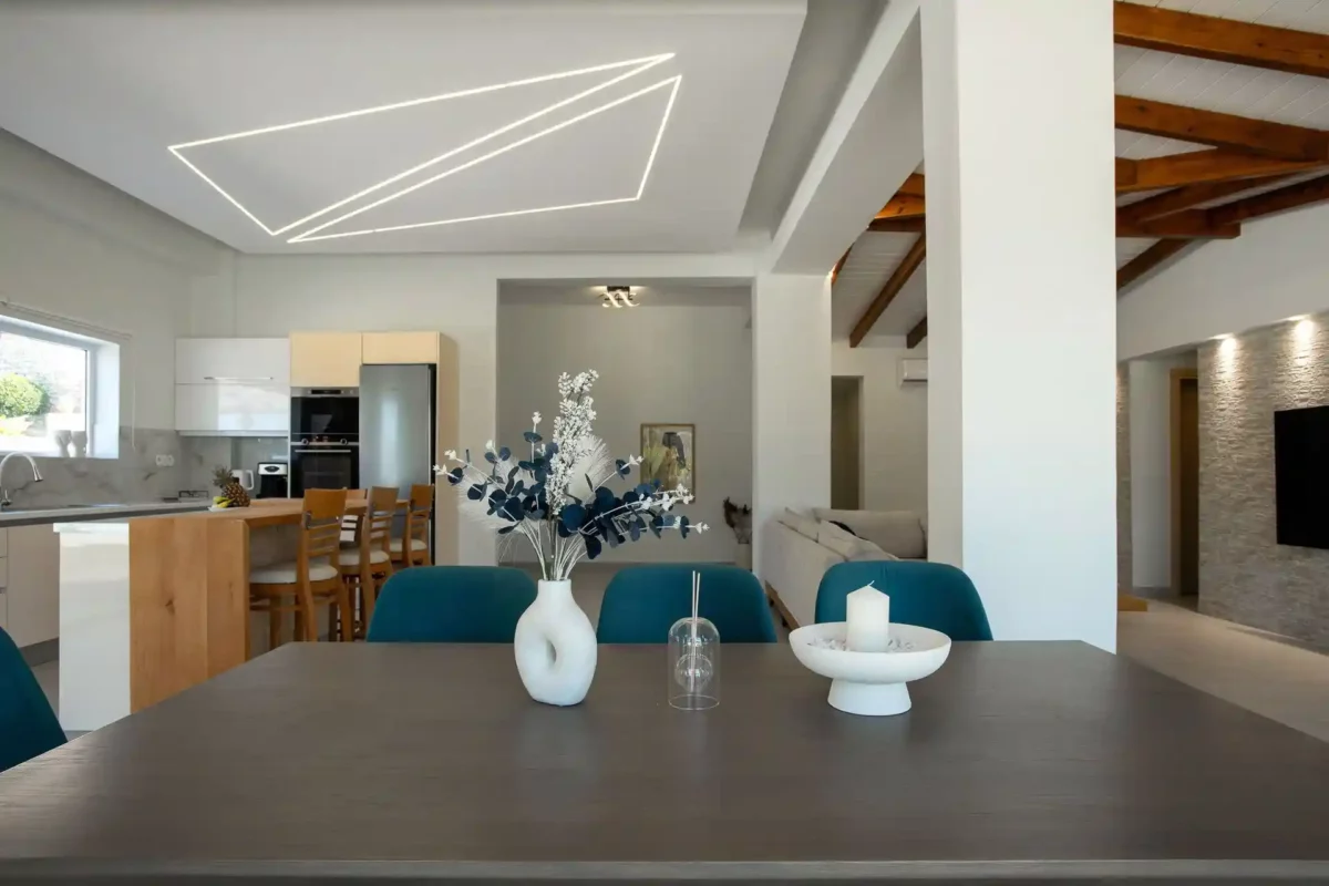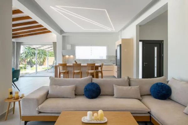 D’une superficie de 170 m², Villa Aurora Blue dispose de 3 chambres, chacune avec salle de bain privée. Les espaces intérieurs sont modernes, fonctionnels et lumineux, avec un vaste séjour ouvert sur l’extérieur.