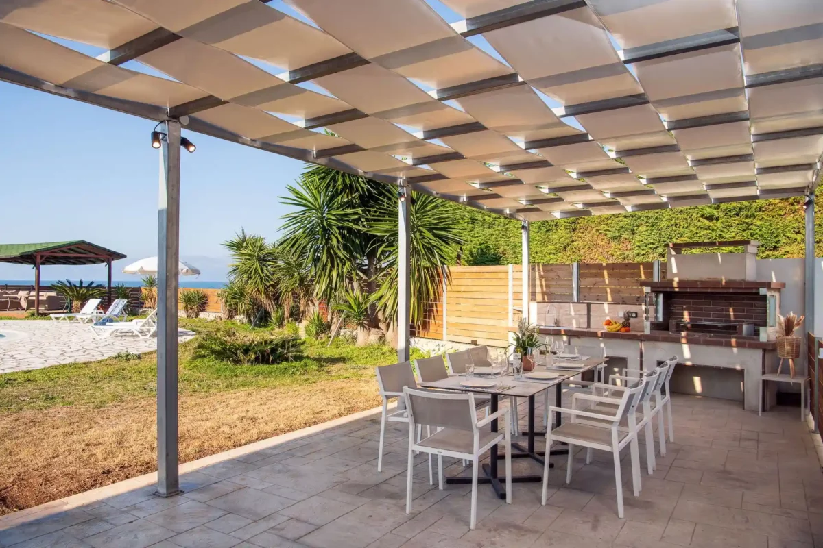 L’un des principaux atouts de Villa Aurora Blue est sa position privilégiée : la plage se trouve en contrebas de la propriété et elle est accessible à pied. Bars, tavernes et mini-marchés sont également situés à proximité immédiate, permettant de profiter pleinement du séjour sans déplacements importants.