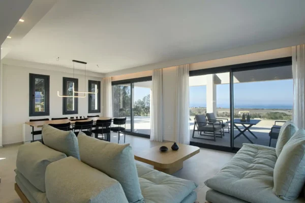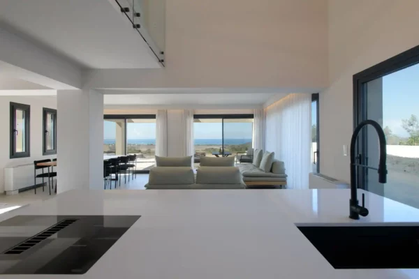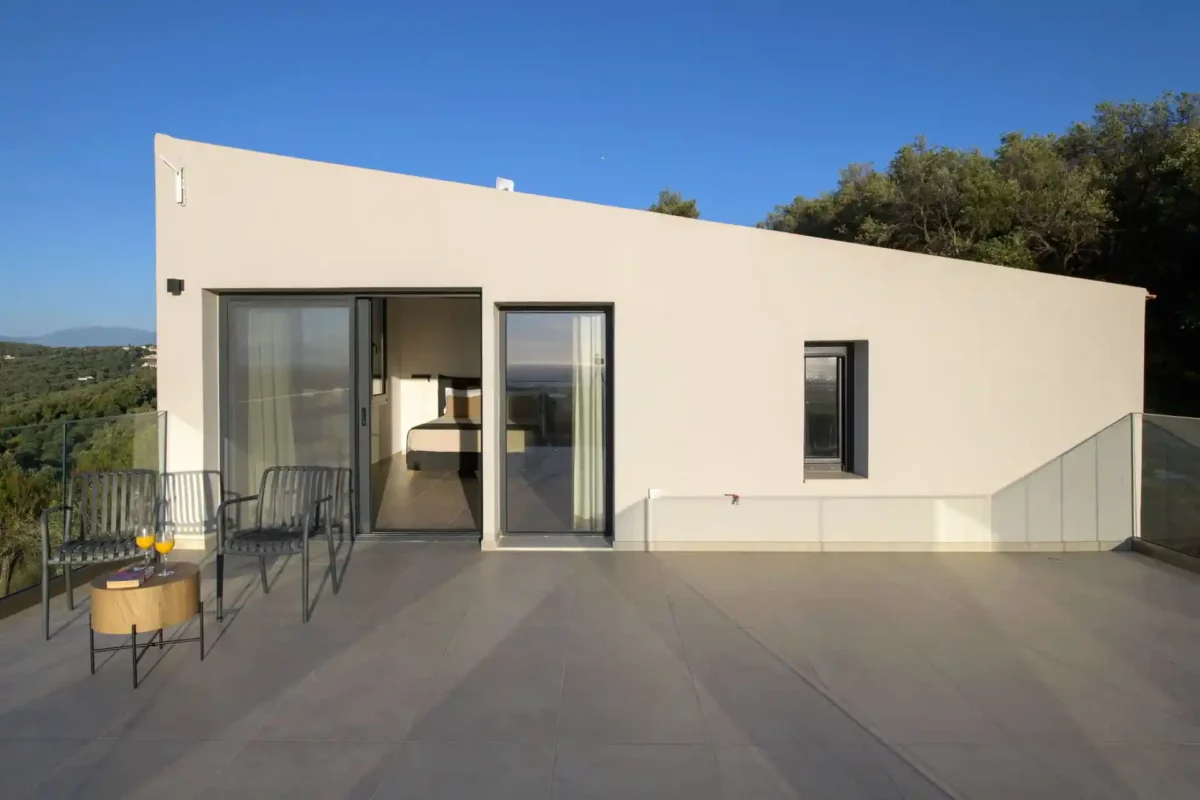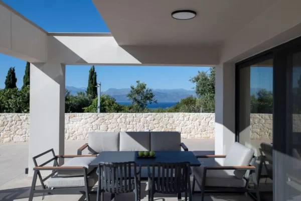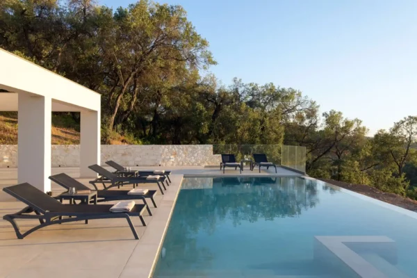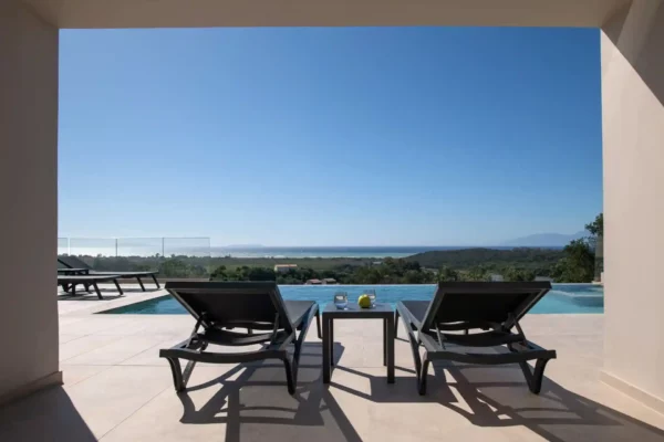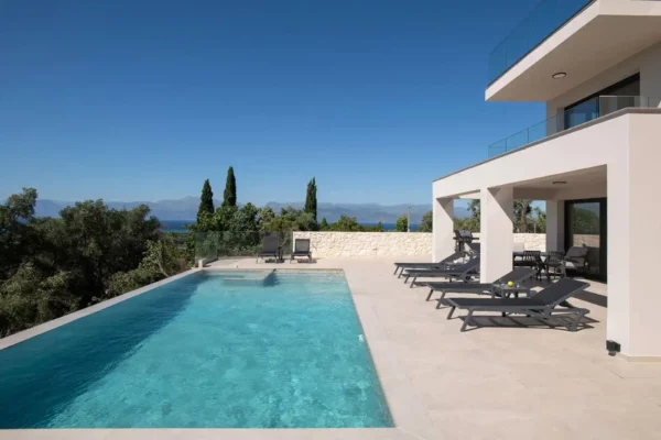 Villa Cocona convient aux familles ou groupes recherchant une villa moderne avec piscine et vue mer, située à proximité des plages et des principaux villages du nord de Corfou.