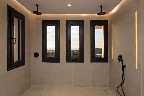 Rez-de-chaussée : entrée sur salon lumineux avec coin repas et cuisine (four ; lave-vaisselle ; micro-ondes ; réfrigérateur avec congélateur ; plaque de cuisson à induction ; réfrigérateur à vin) ; WC. Quelques marches plus haut : 1 chambre double avec salle de bain privée (douche) et balcon. Premier étage : 1 grande chambre double avec salle de bain privée équipée d’un double lavabo et d’une double douche et terrasse panoramique privée ; 1 chambre double avec salle de bain privée (douche). Deuxième étage : 1 chambre double avec salle de bain privée (douche) et accès à une terrasse panoramique privée.