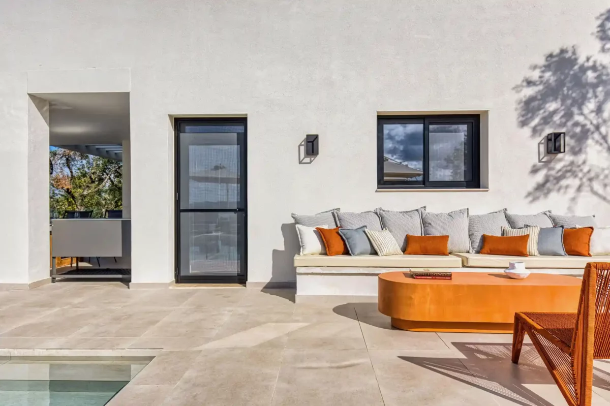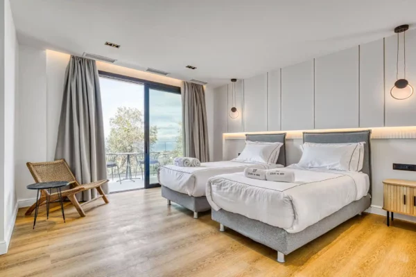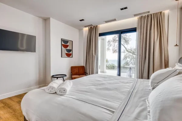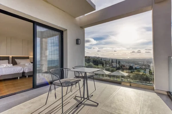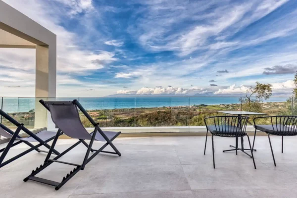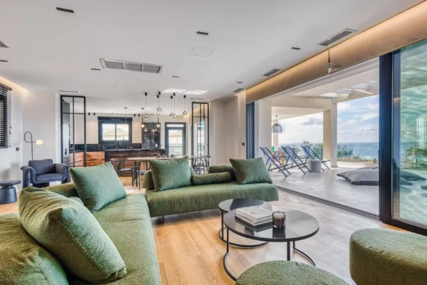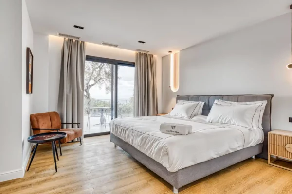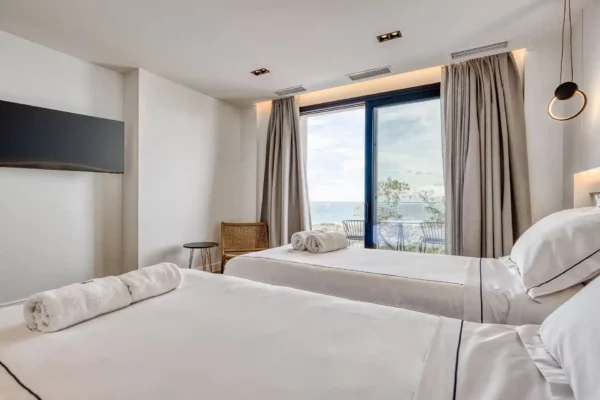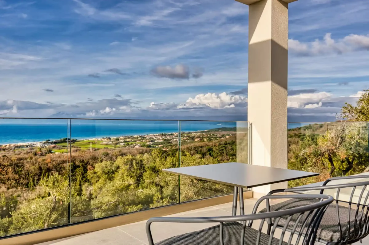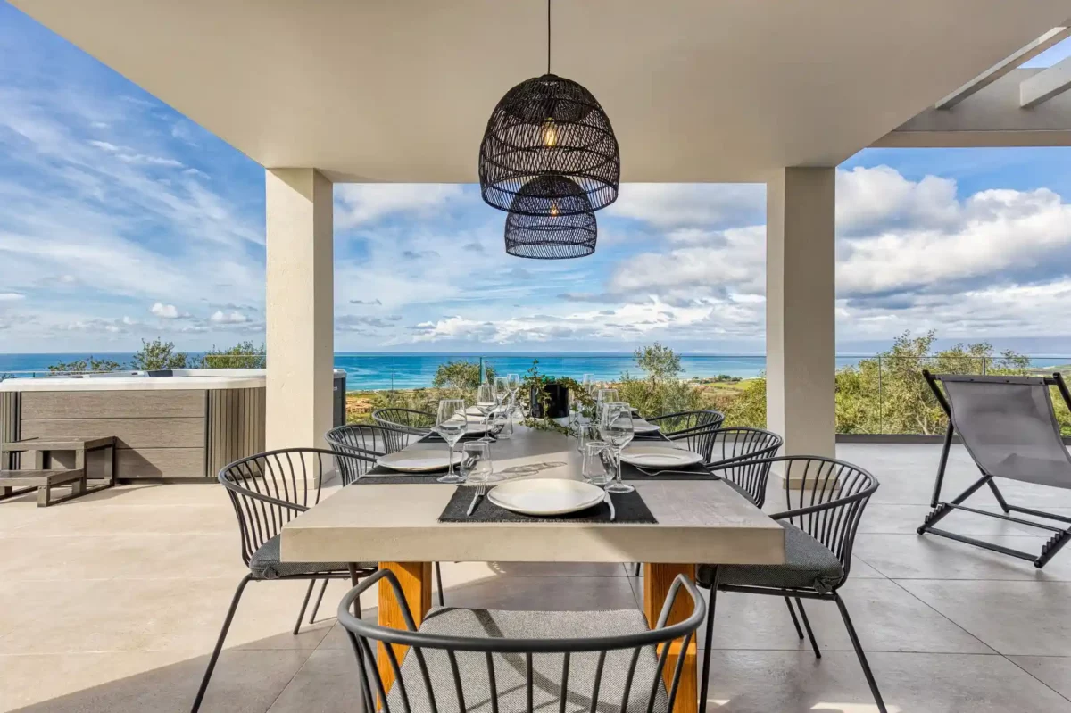 Villa Dominante est une villa récente située sur la côte nord de Corfou. Récemment achevée, elle bénéficie d’une position surélevée offrant une vue panoramique sur la mer et la campagne environnante.