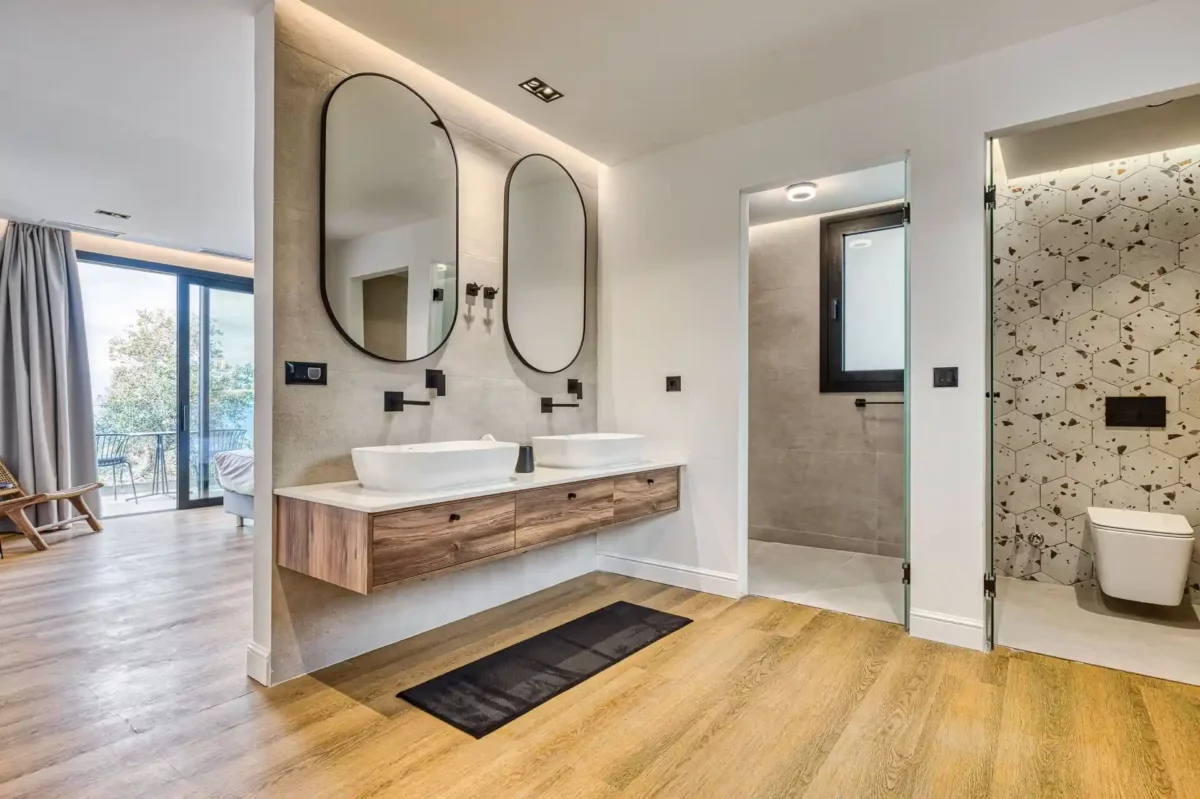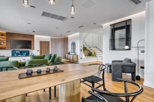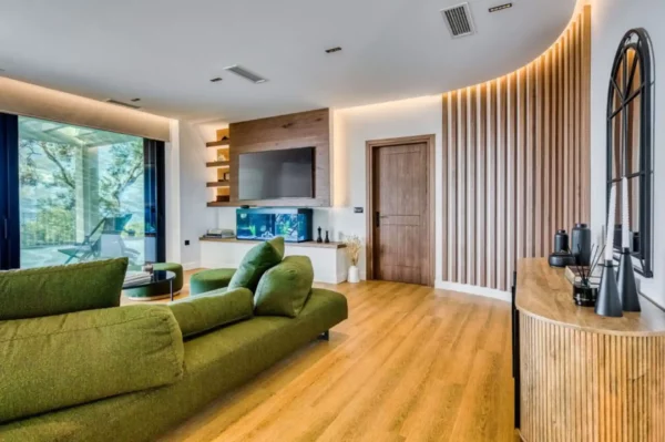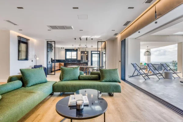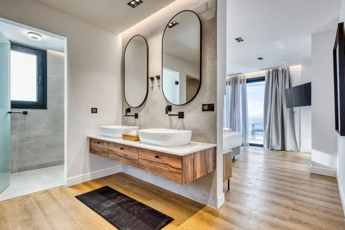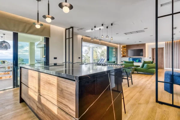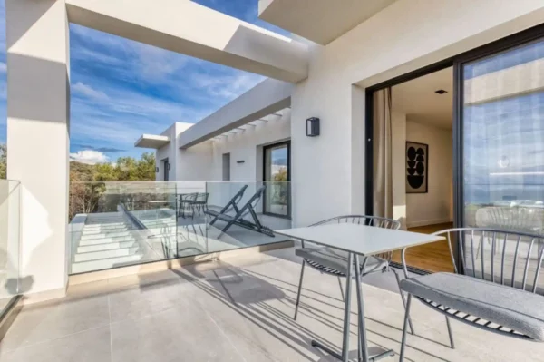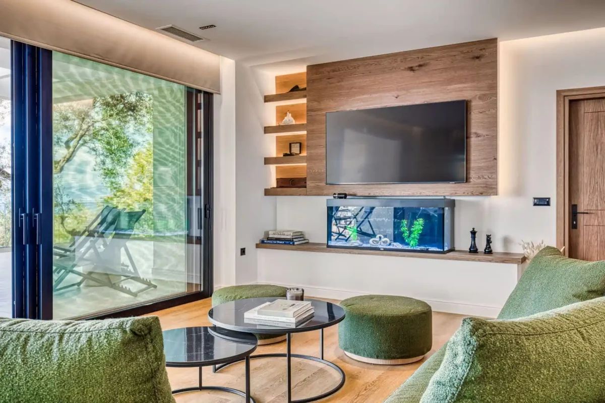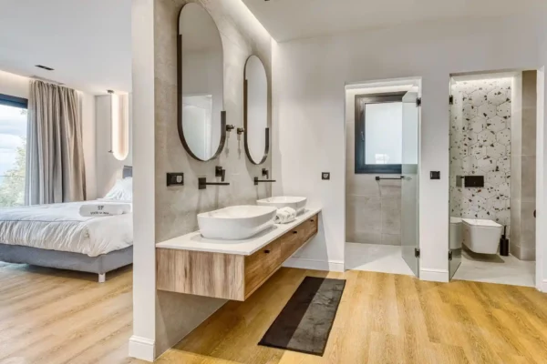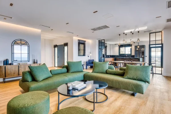 Villa Dominante est une villa récente située sur la côte nord de Corfou. Récemment achevée, elle bénéficie d’une position surélevée offrant une vue panoramique sur la mer et la campagne environnante.
