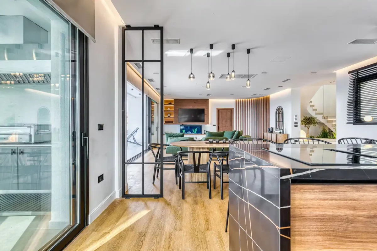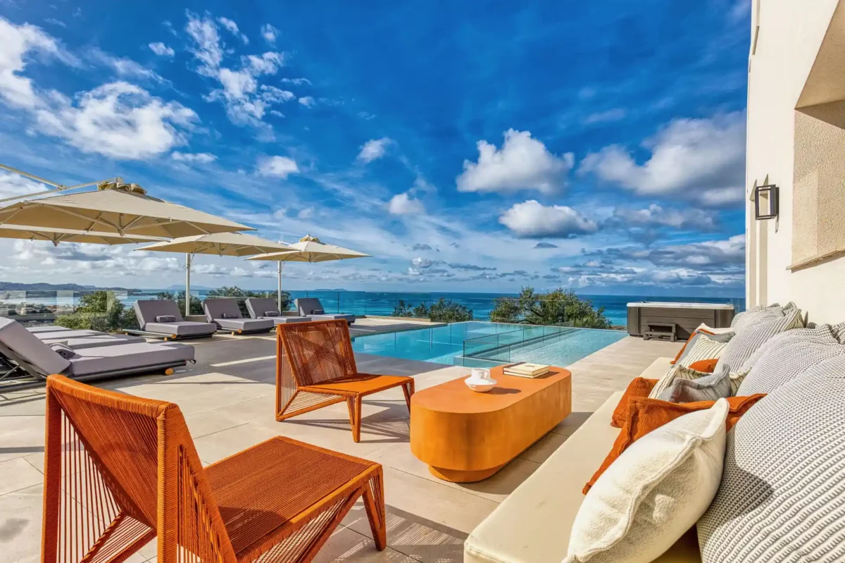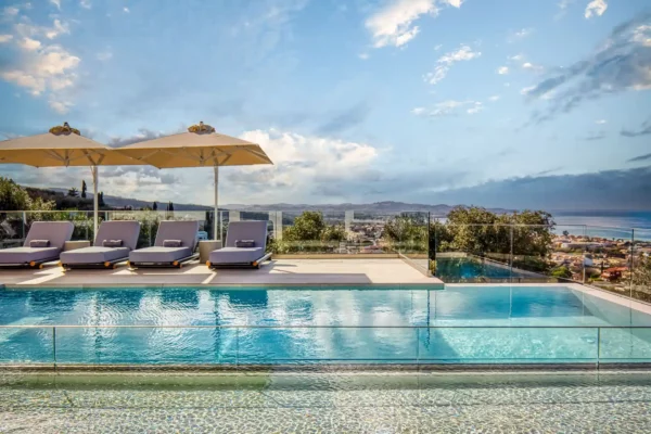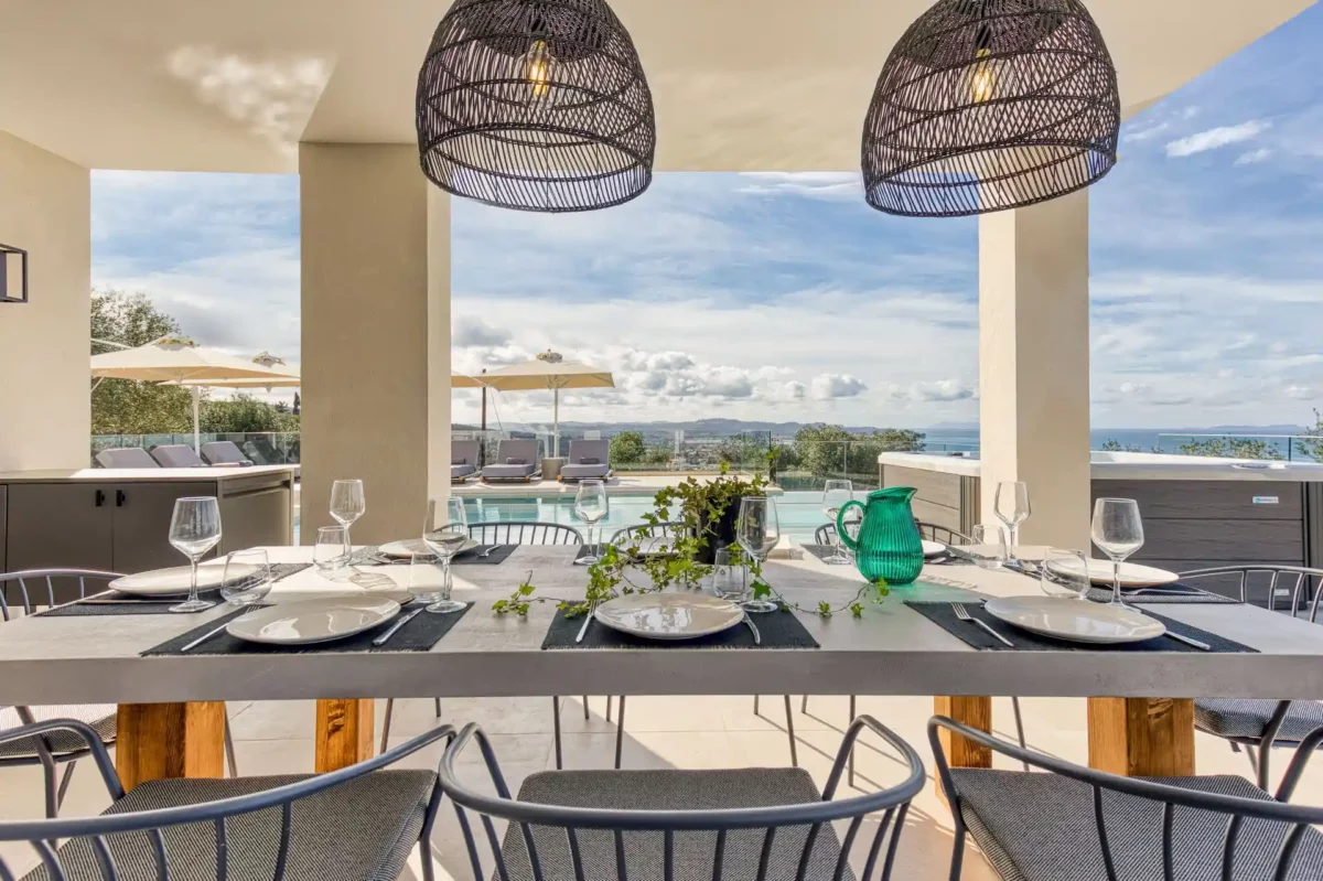 Villa Dominante est adaptée aux familles ou groupes recherchant une villa avec vue panoramique, piscine privée et proximité des plages et des commerces du nord de Corfou.