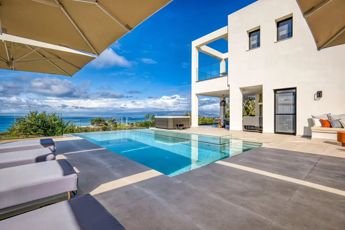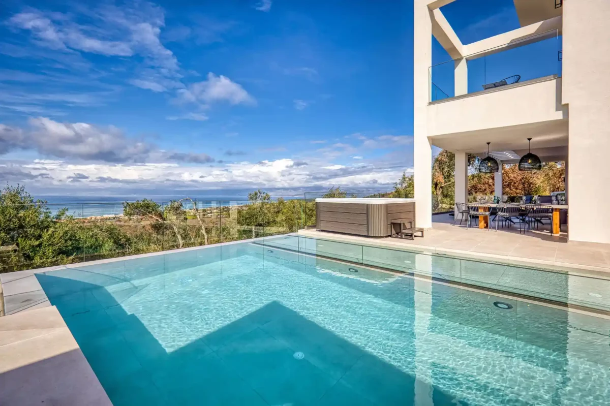 Villa Dominante : une villa avec piscine et vue panoramique à Acharávi, Corfou.