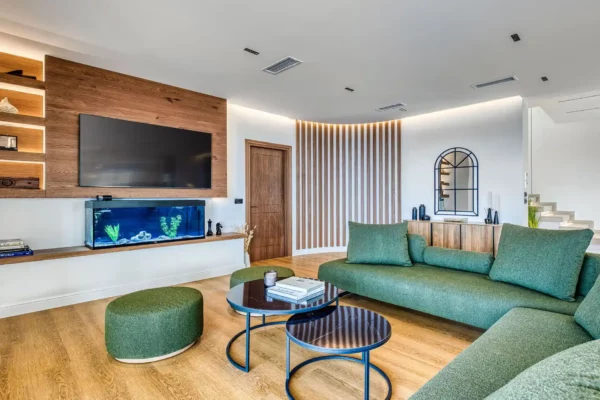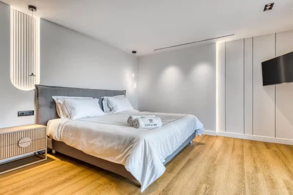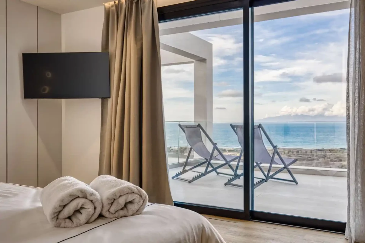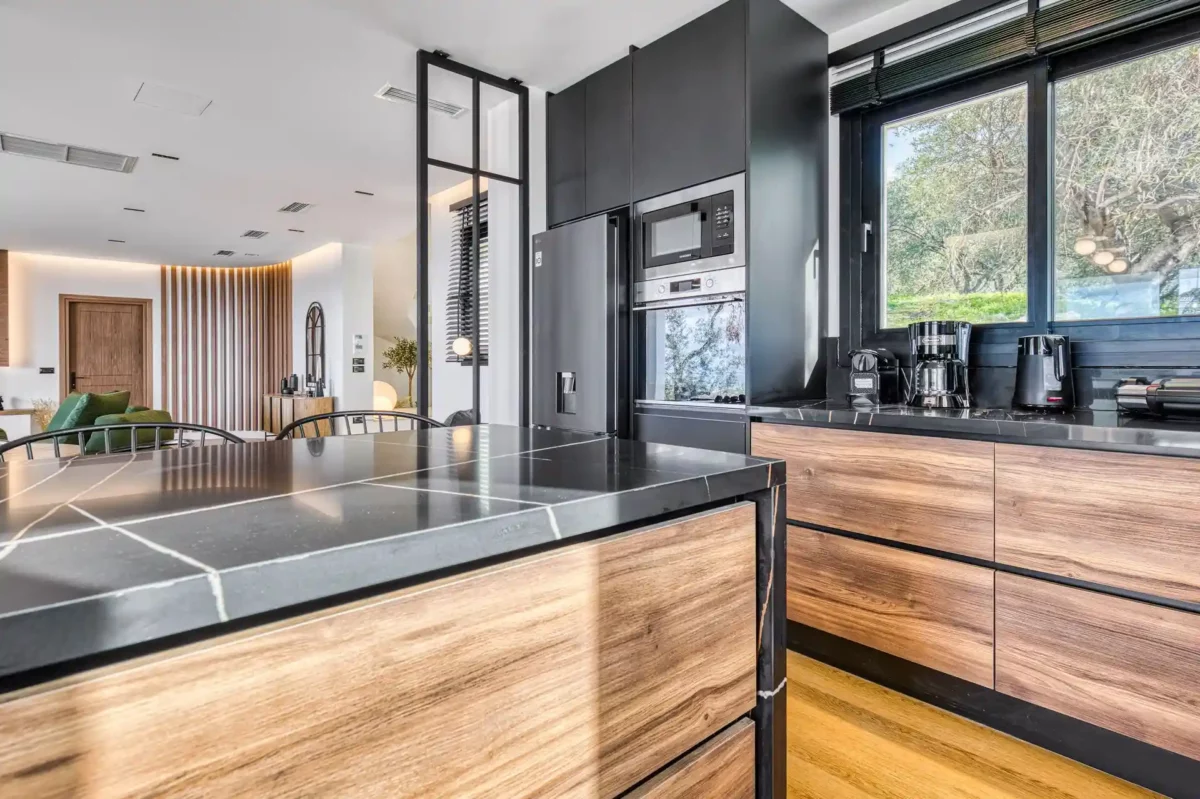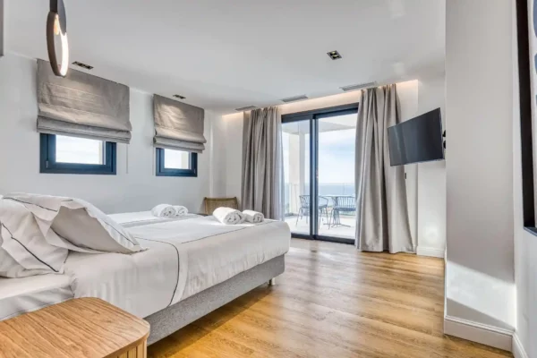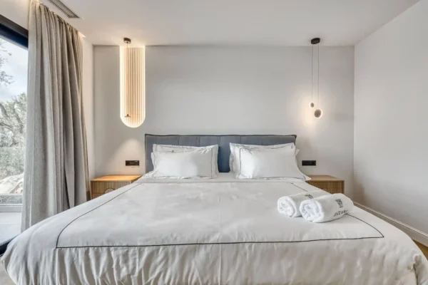 La situation de Villa Dominante constitue l’un de ses principaux atouts : la mer et la plage d’Almiros se trouvent à environ 1,5 km, tout comme le village d’Acharavi avec ses commerces en tout genre. Cette position permet de profiter d’un environnement calme tout en restant proche des services et des plages.