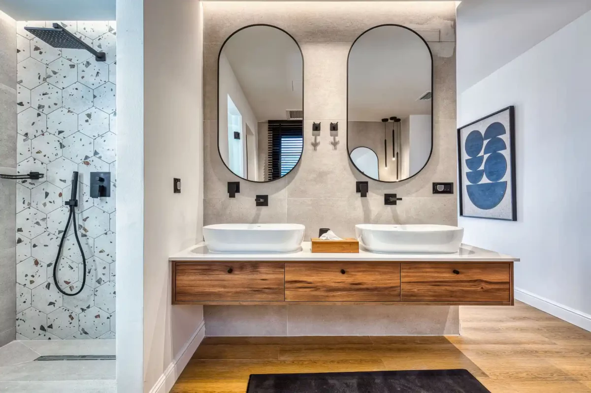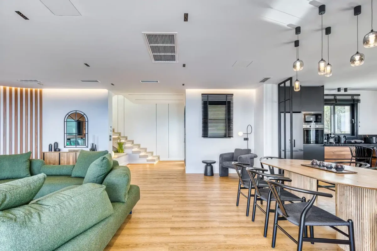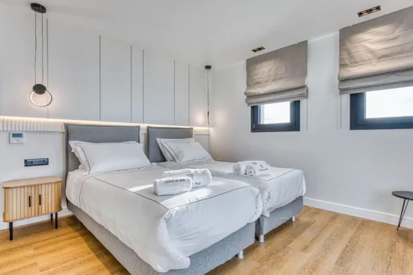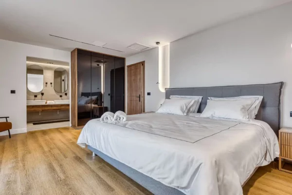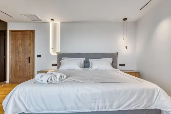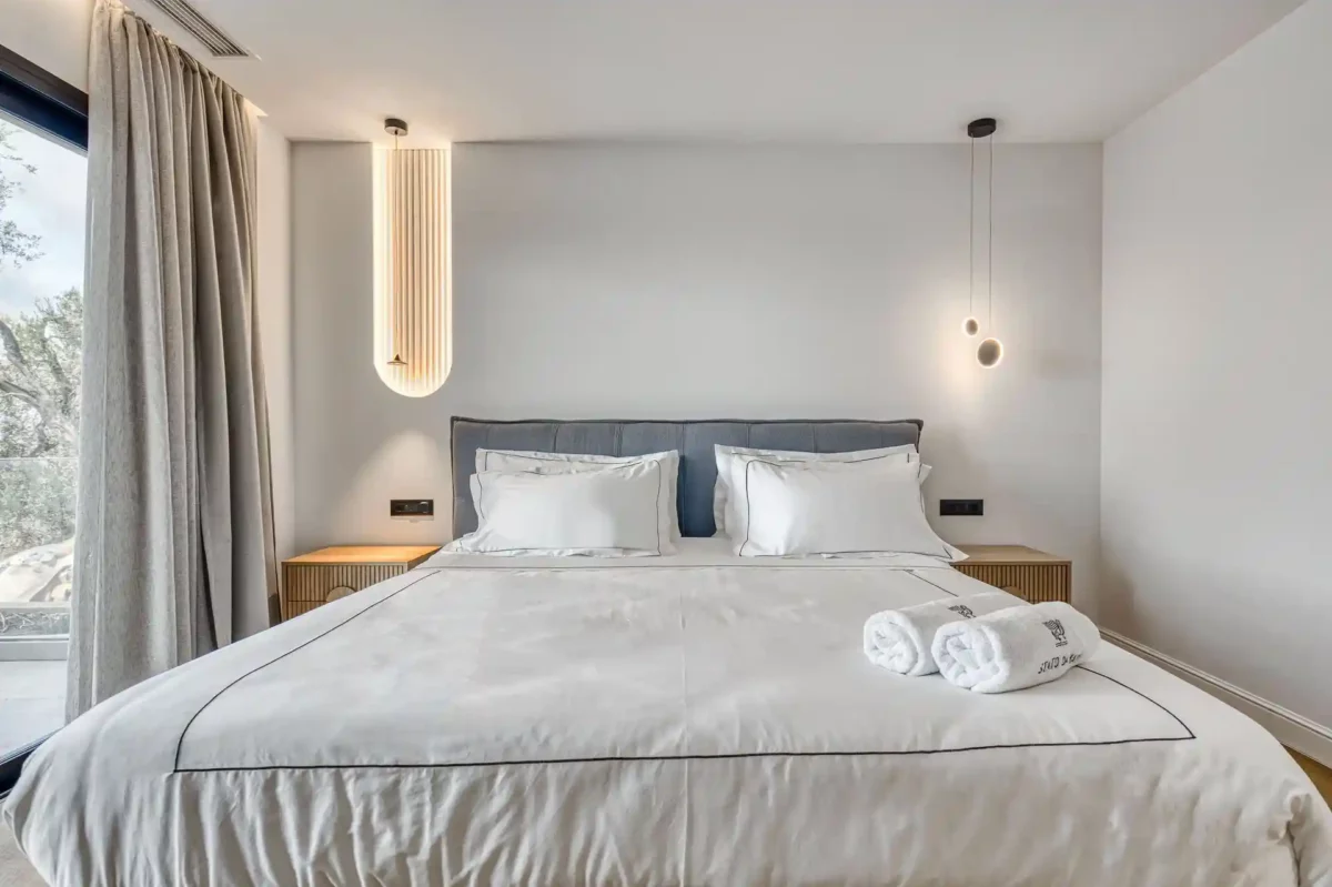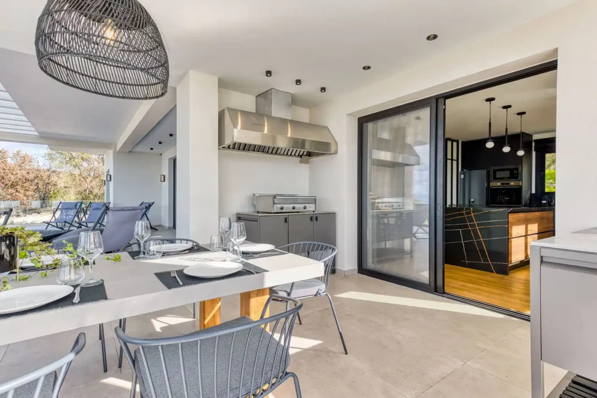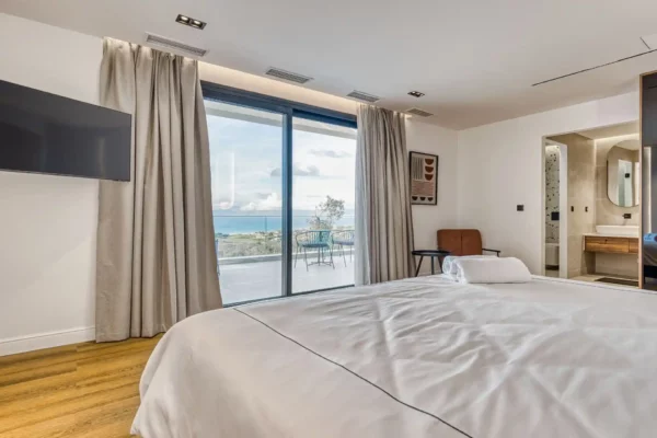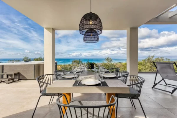 Le jardin panoramique accueille une piscine privée ainsi qu’un espace extérieur aménagé pour les repas en plein air. La villa dispose de 4 chambres, chacune avec salle de bain privée, et peut accueillir jusqu’à 8 personnes dans un cadre confortable et bien agencé.