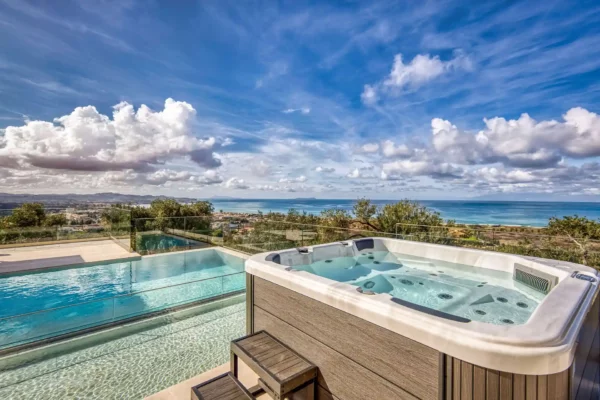 Piscine privée (9 x 5 m ; prof : 1,30 m) avec partie séparée pour enfants (prof : 0,40 m). Jacuzzi. Jardin et terrasse panoramique. Espace extérieur aménagé pour les repas en plein air. Barbecue. Vue panoramique sur la mer et la campagne. Air conditionné. Wifi. Smart TV. TV satellite. Coffre-fort. Moustiquaires. Lave-linge et sèche-linge. Parking. Maison non fumeur. Numéro de licence de Villa Dominante : 0829Κ91000478500.