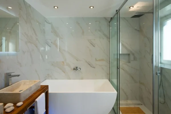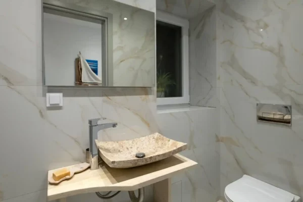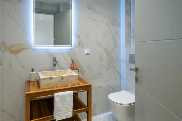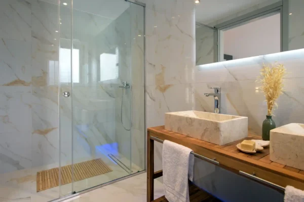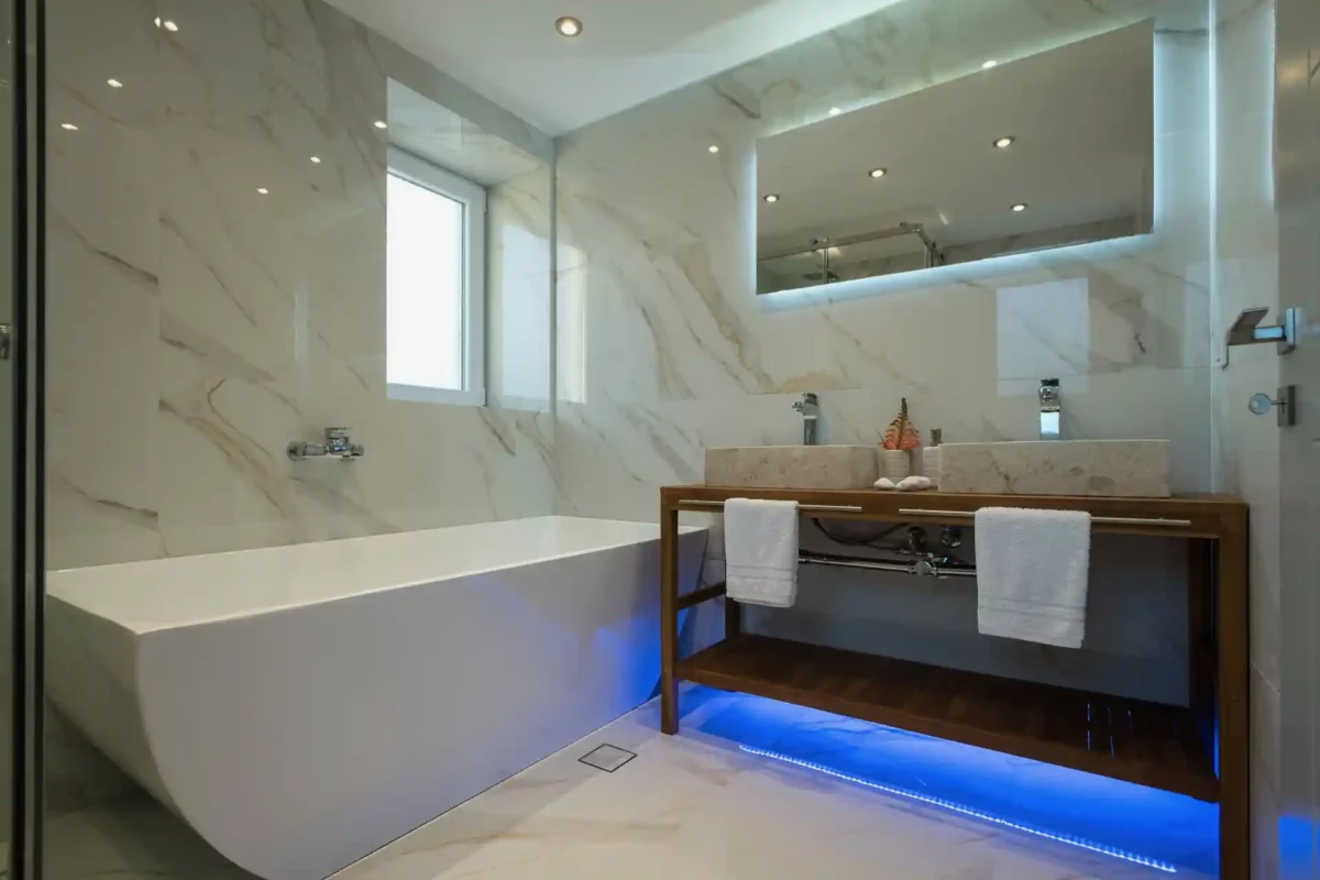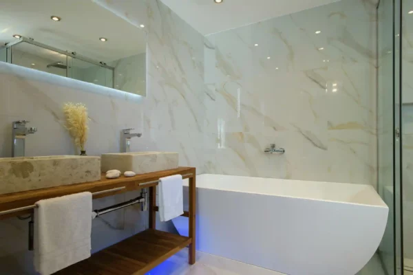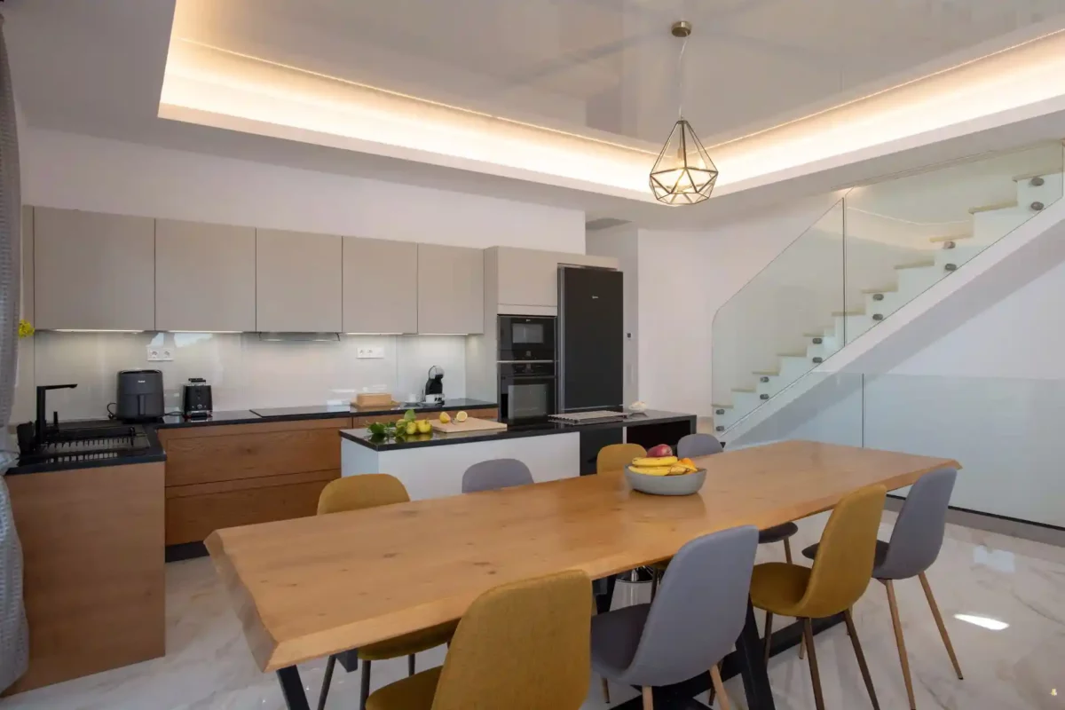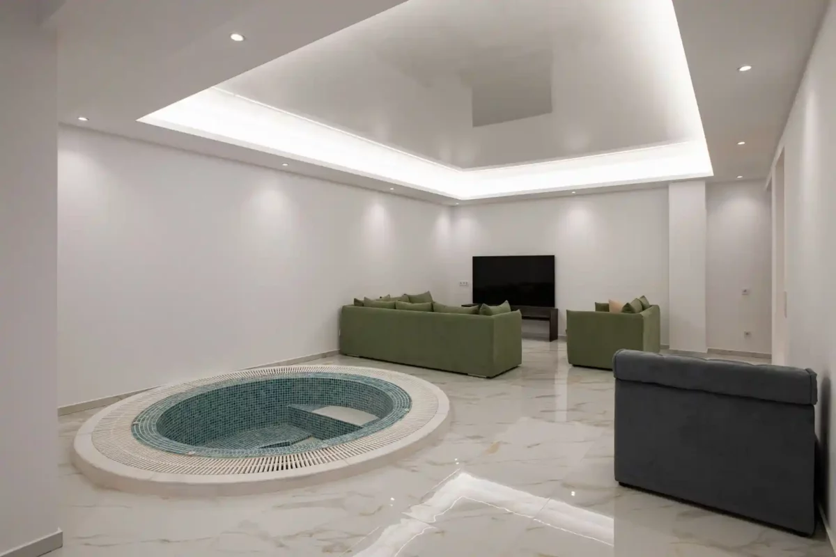 D’une superficie de 216 m² répartis sur trois niveaux, la villa Sunset dispose de 3 chambres et peut accueillir jusqu’à 6 à 8 personnes. Les espaces intérieurs sont lumineux et bien agencés. Un espace bien-être au niveau inférieur comprend un bain à remous circulaire chauffé jusqu’à 36 °C, accessible depuis l’intérieur et l’extérieur.