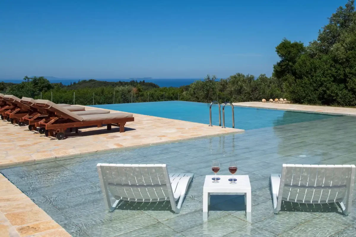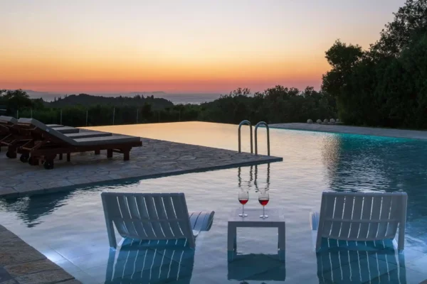 Villa Sunset convient aux familles ou groupes recherchant une villa panoramique avec piscine et espace bien-être, située à proximité des plages et des villages du nord de Corfou.