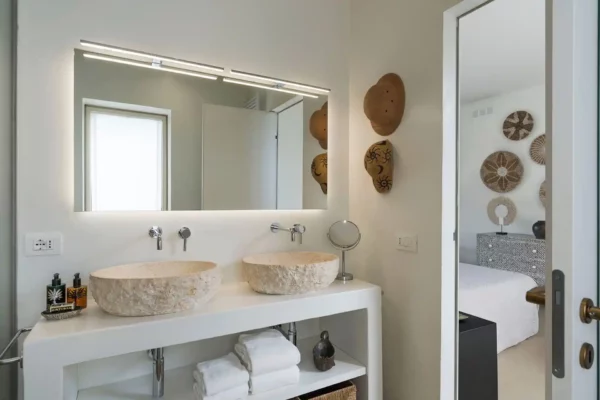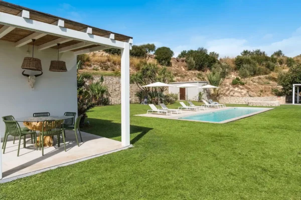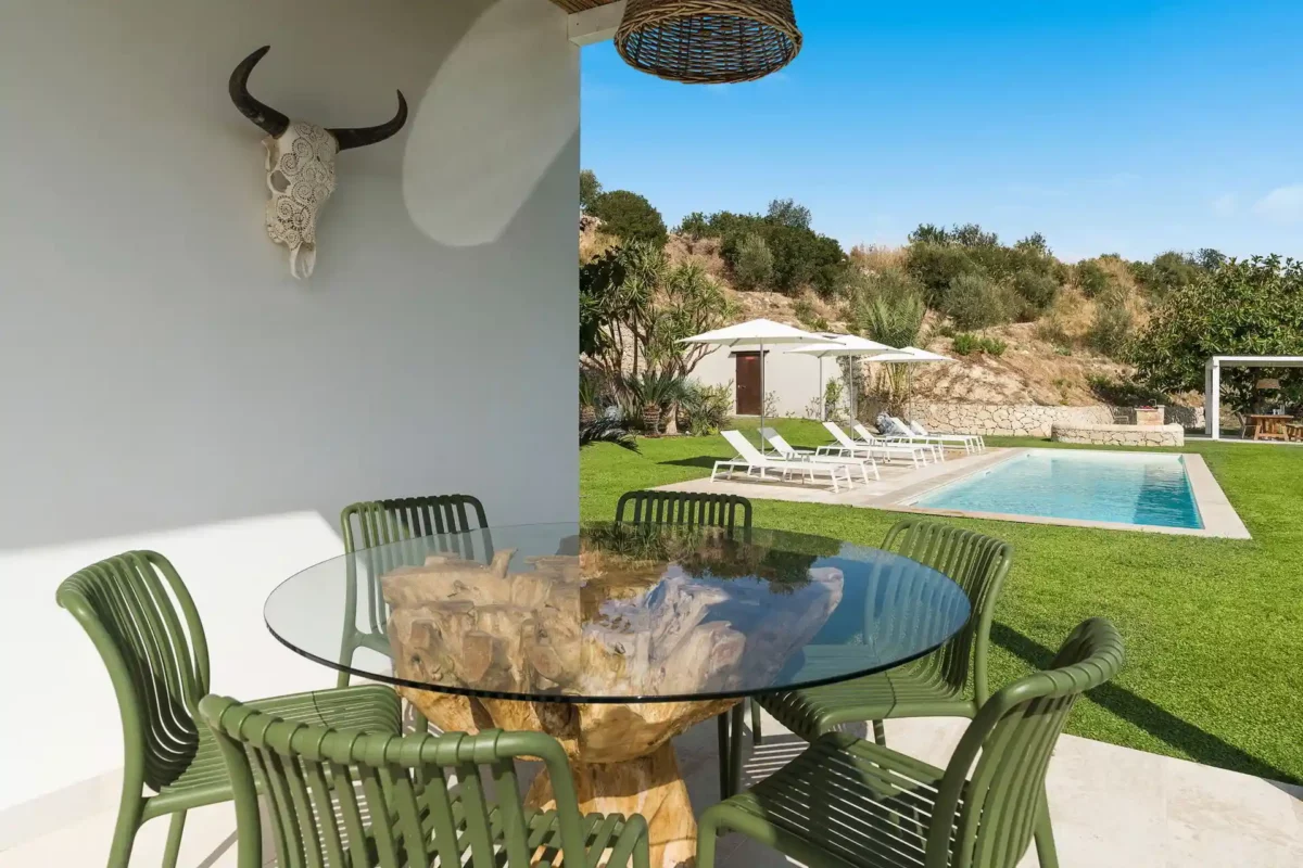 Africa se distingue par son architecture de plain-pied et sa piscine de 12 mètres de long orientée vers l’horizon. L’accès indépendant aux deux suites depuis la terrasse offre une configuration adaptée aux groupes recherchant de l’intimité. Sa localisation au calme d’un domaine de 5000 m², tout en étant à 3 km des services de Noto, en fait un point de départ pour explorer le baroque sicilien.