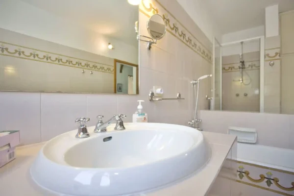 Rez-de-chaussée : grande cuisine bien équipée donnant sur terrasse aménagée pour les repas en plein air. Grand salon / salle à manger avec 3 portes fenêtres ouvrant sur la loggia et le jardin. Salon. Salle de bains invités. Buanderie. Premier étage : 3 chambres doubles salle de bain (baignoire et douche séparée). Une chambre double avec salle de bain privée (baignoire et douche séparée).