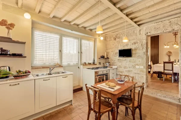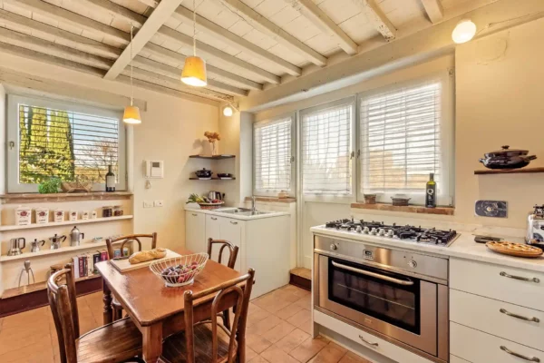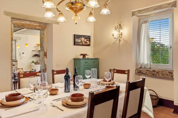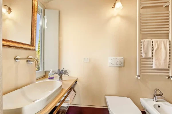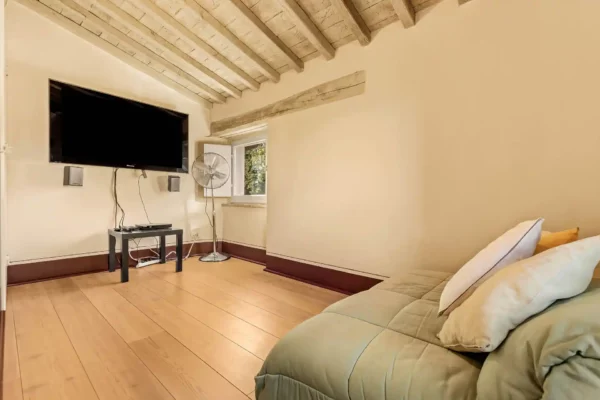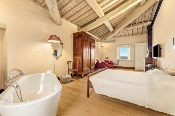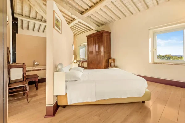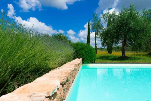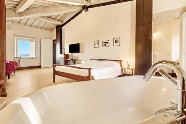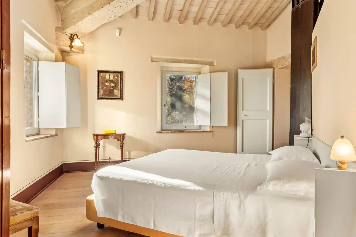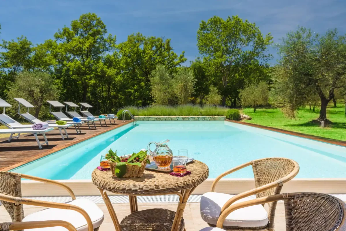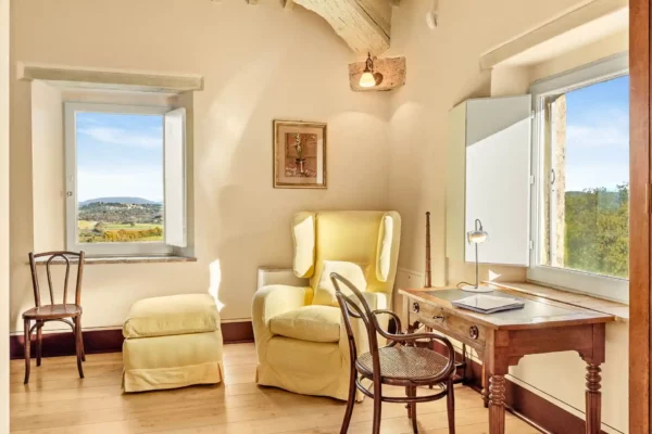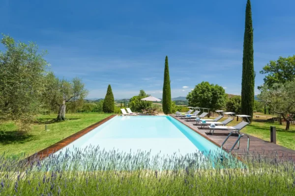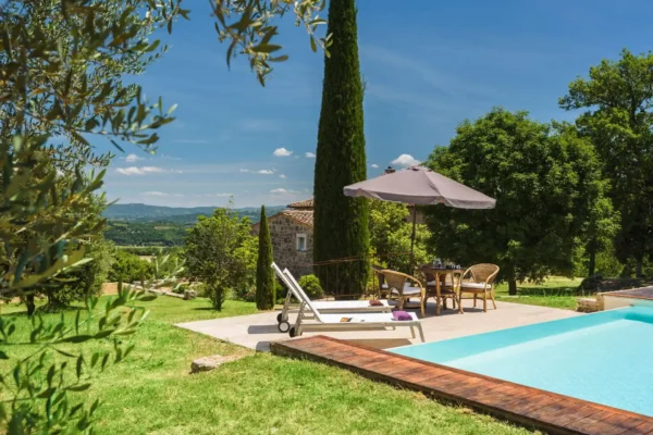 Profitez d’une atmosphère paisible et élégante, rehaussée par des intérieurs chaleureux, des jardins paysagers méticuleusement conçus et une grande piscine privée (12×6 m). Terra Quercus se distingue par son aile séparée pour les invités et sa proximité immédiate avec le charmant village de Sarteano (2,5 km).